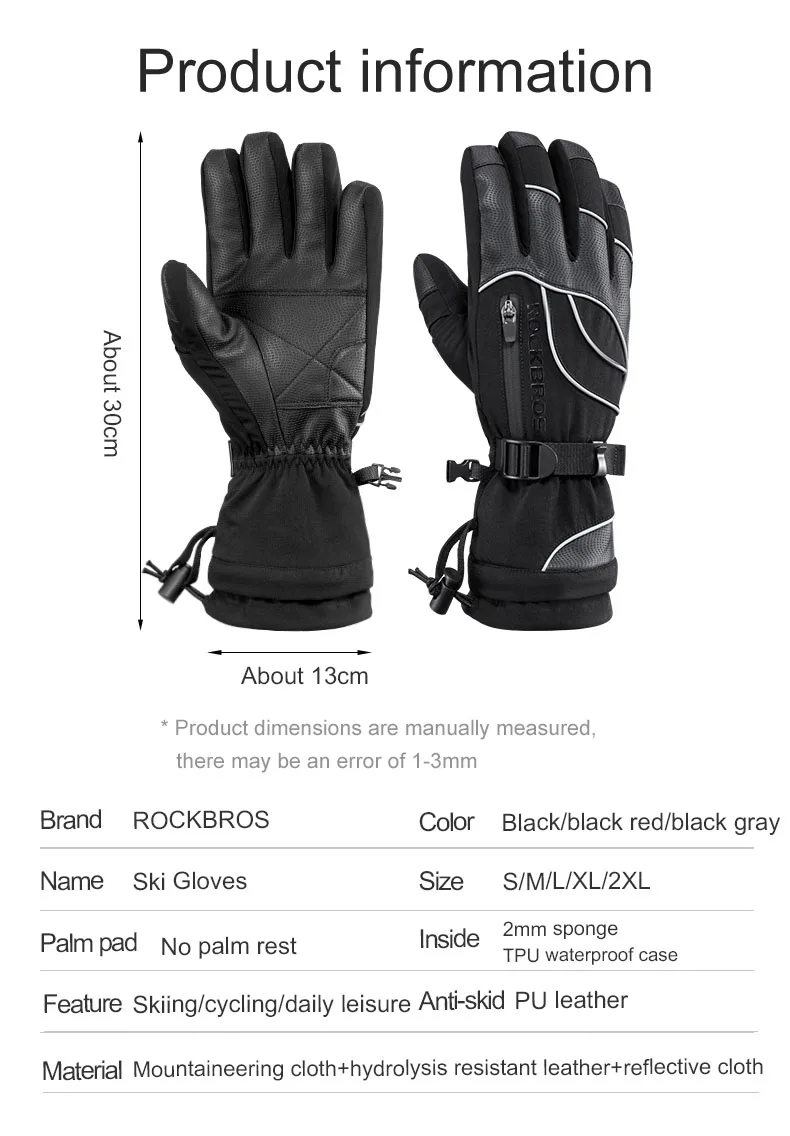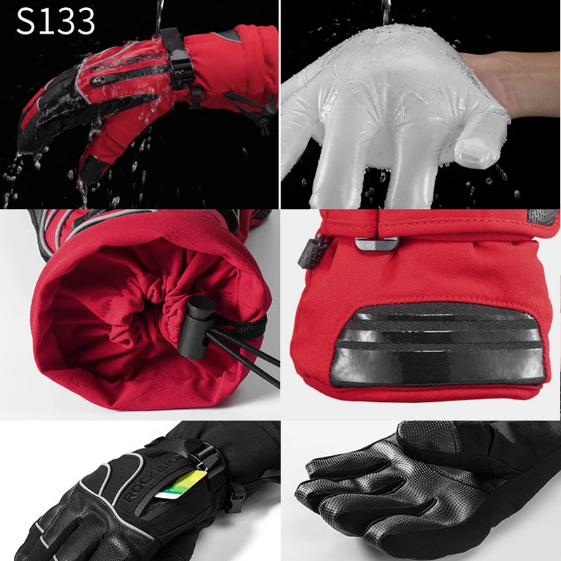 Велосипедные перчатки ROCKBROS, теплые водонепроницаемые ветрозащитные, для горных велосипедов, до-40 градусов, для катания на лыжах, пеших прогулок, снегоходов, мотоциклов