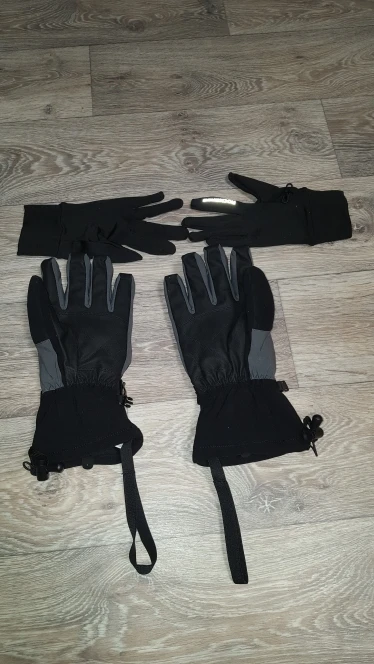 Перчатки крутые, в комплекте 2 пары, одни как бы тонки под эти тёплые одевать, но я видимо не угадал с размером, и если я надеваю две пары перчатки, то они мне сильно велики, а если просто тёплые, то всё отлично. Поэтому тонкие перчатки просто убрал на полку и не пользуюсь ими.