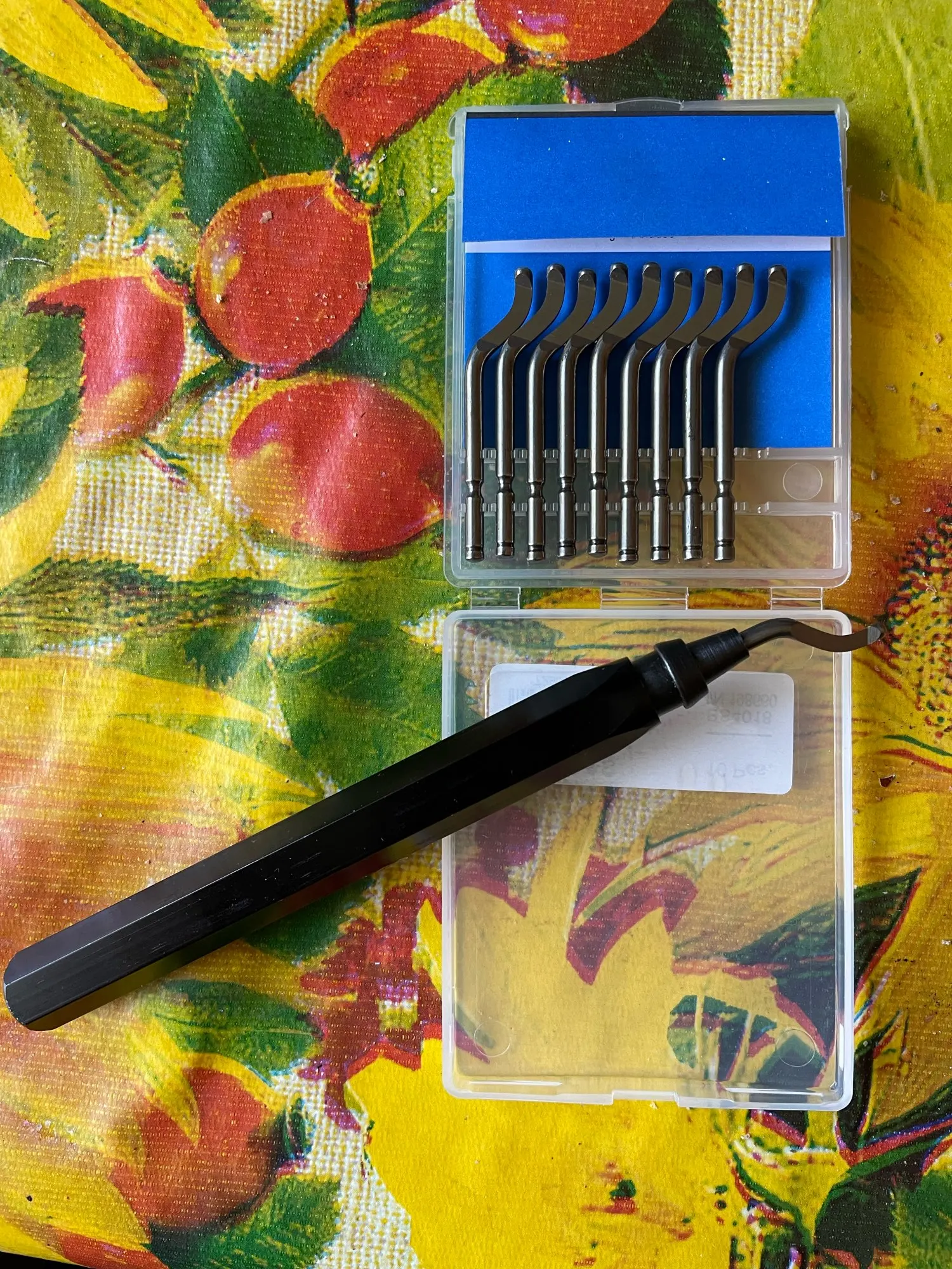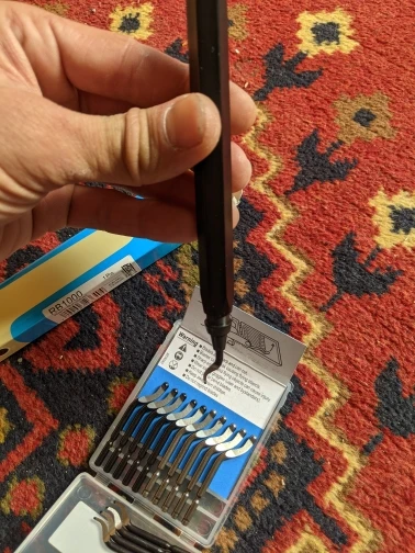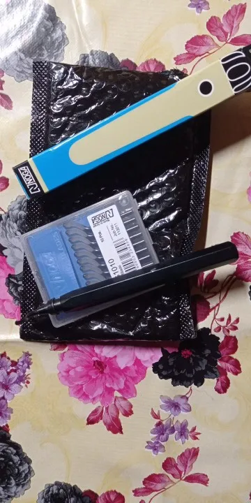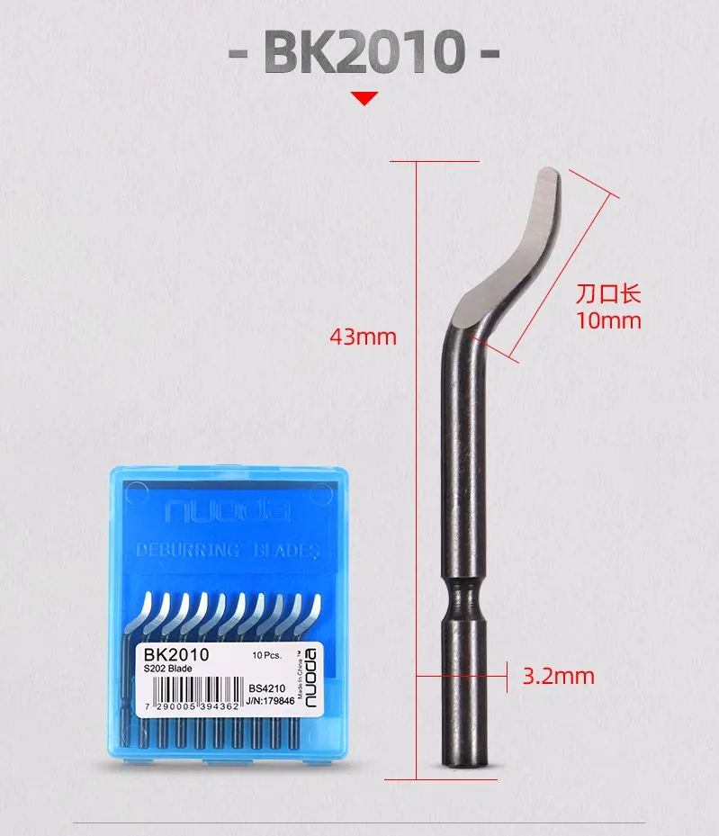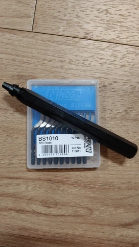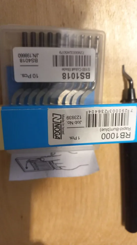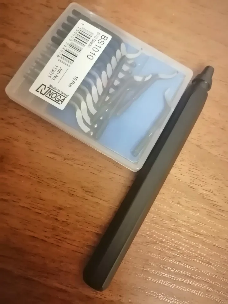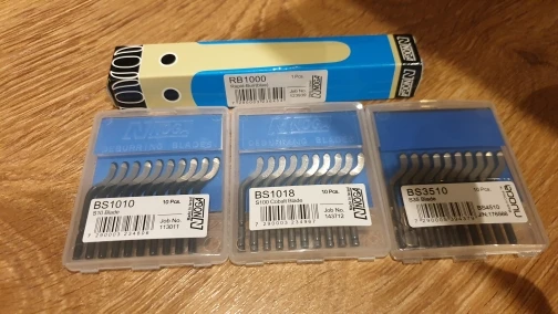 Брал себе ручку RB1000 и набор BS1010, получил от покупки супер удовольствие, ручка металлическая и приятно лежит в руке, на ней быстросъем в который вставляются лезвия. Обращаю внимание, лезвия фиксируются только на выпадение, т.е сами в ручке они вращаются без особых усилий. С одной стороны не привычно, с другой иногда оооочень удобно при обработке деталей, особенно окружностей. Качество лезвий на высоте, мне, с обработкой пластика хватит точно надолго. Лично себе еще возьму еще других моделей лезвий, одни точно с меньшей каплей на конце. Доставка 2 недели в новогодний сезон, это отлично. Рекомендую, не пожалеете! На фото, для масштаба сопло Е6.
