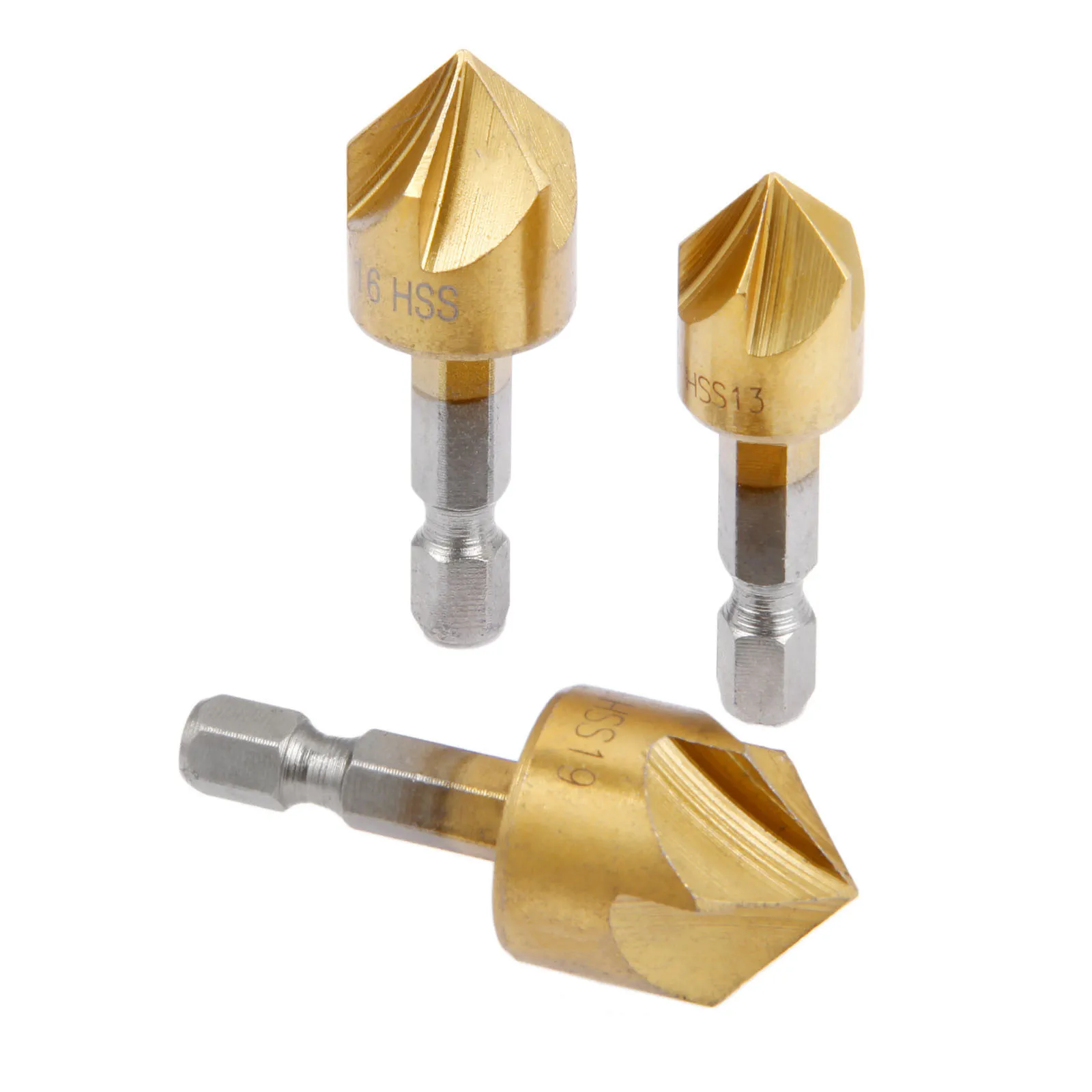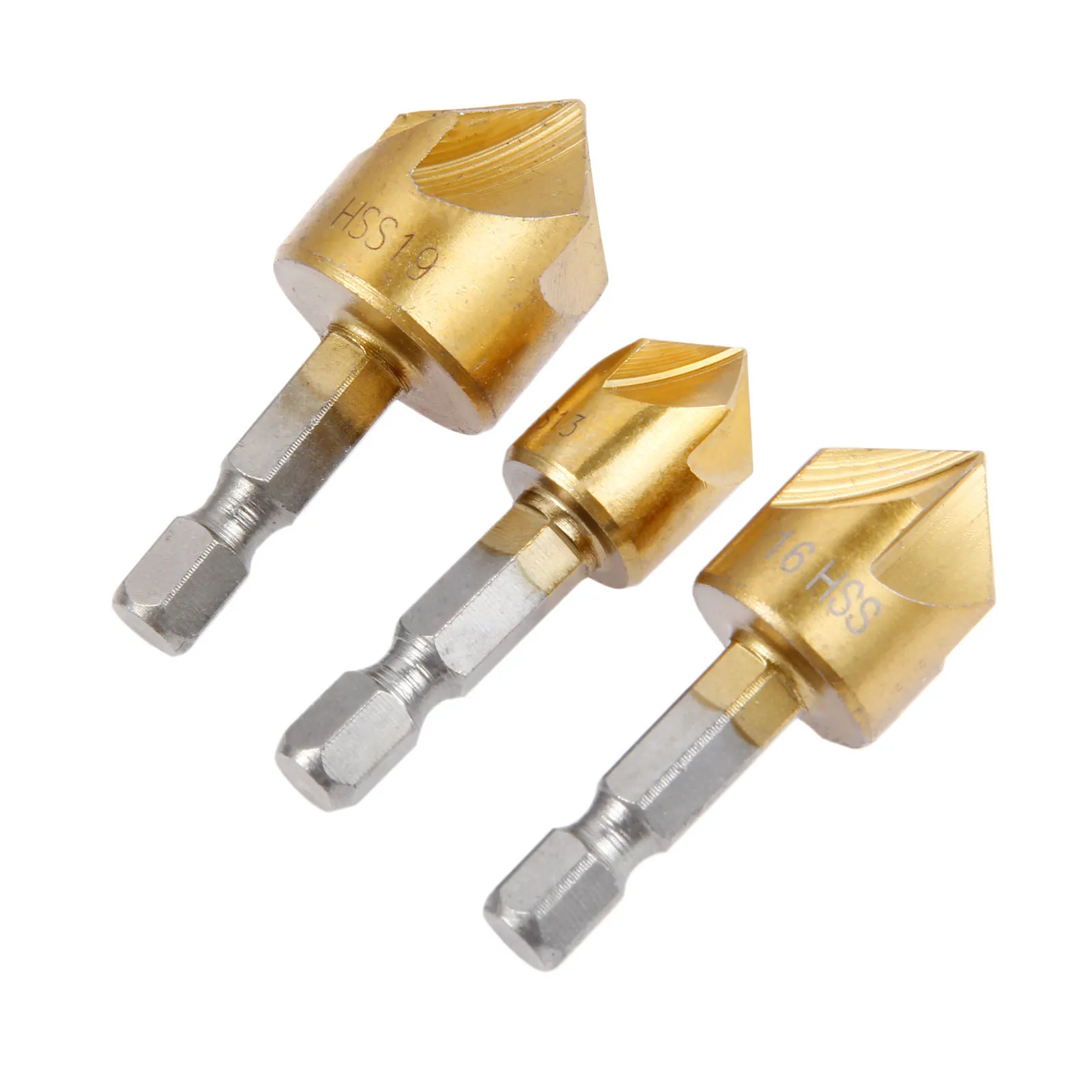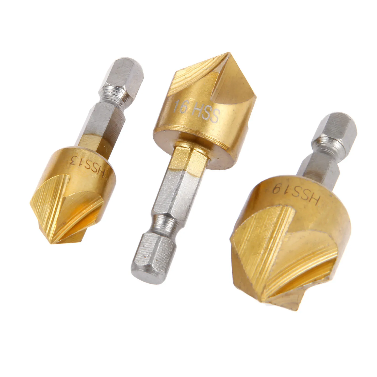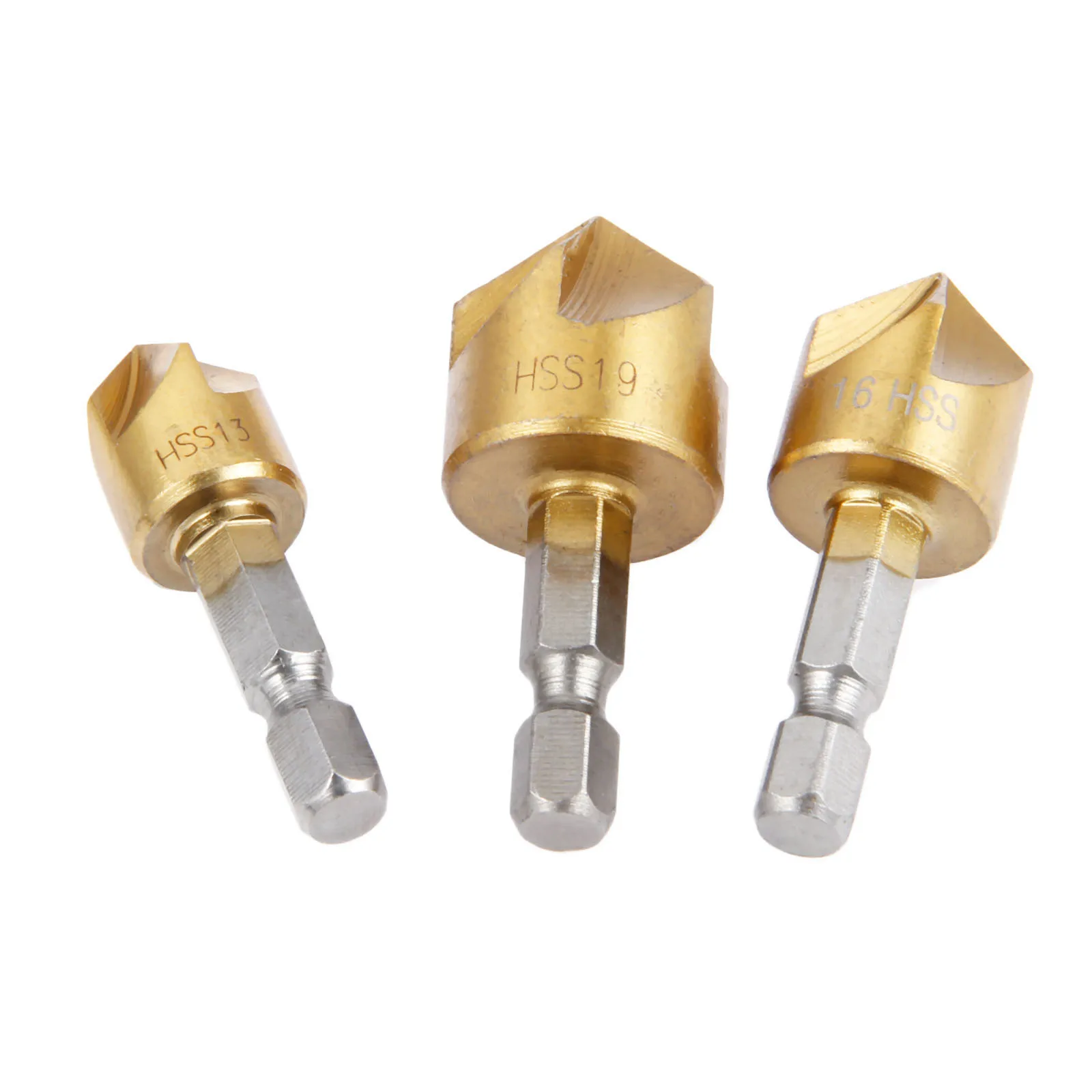 DRELD 3 шт.компл. HSS Титан для снятия заусенцев кромкострогальный станок зенковки сверло биты 121619 мм 90 градусов 5 флейт алюминиевая Концевая фреза Инструменты