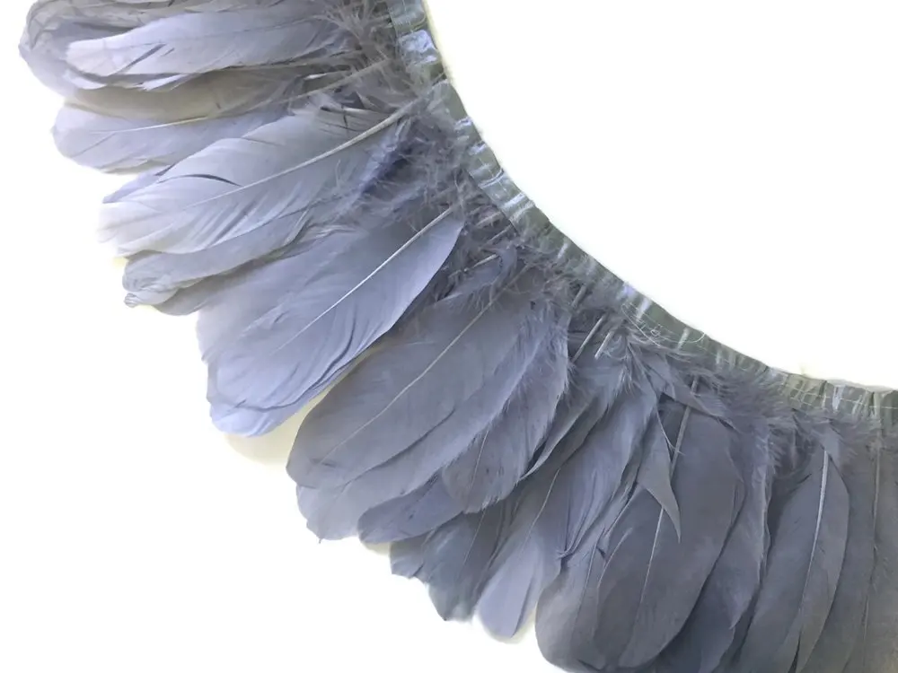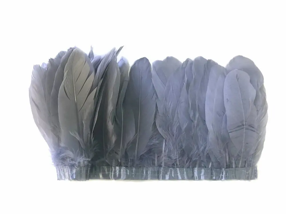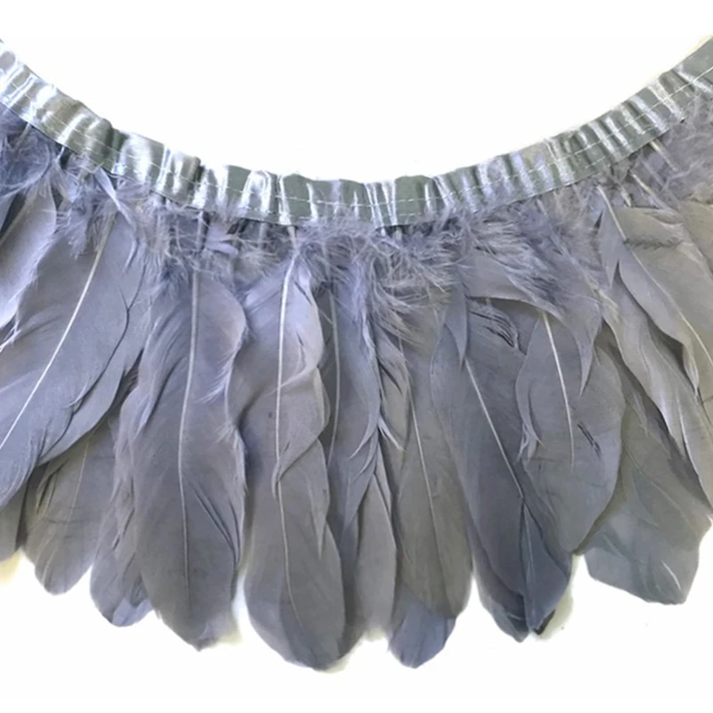 Оптовая продажа 2 млот крашеные серые гусиные перья планки настоящие гусиные перья ленты с бахромой платье пояс декоративная одежда