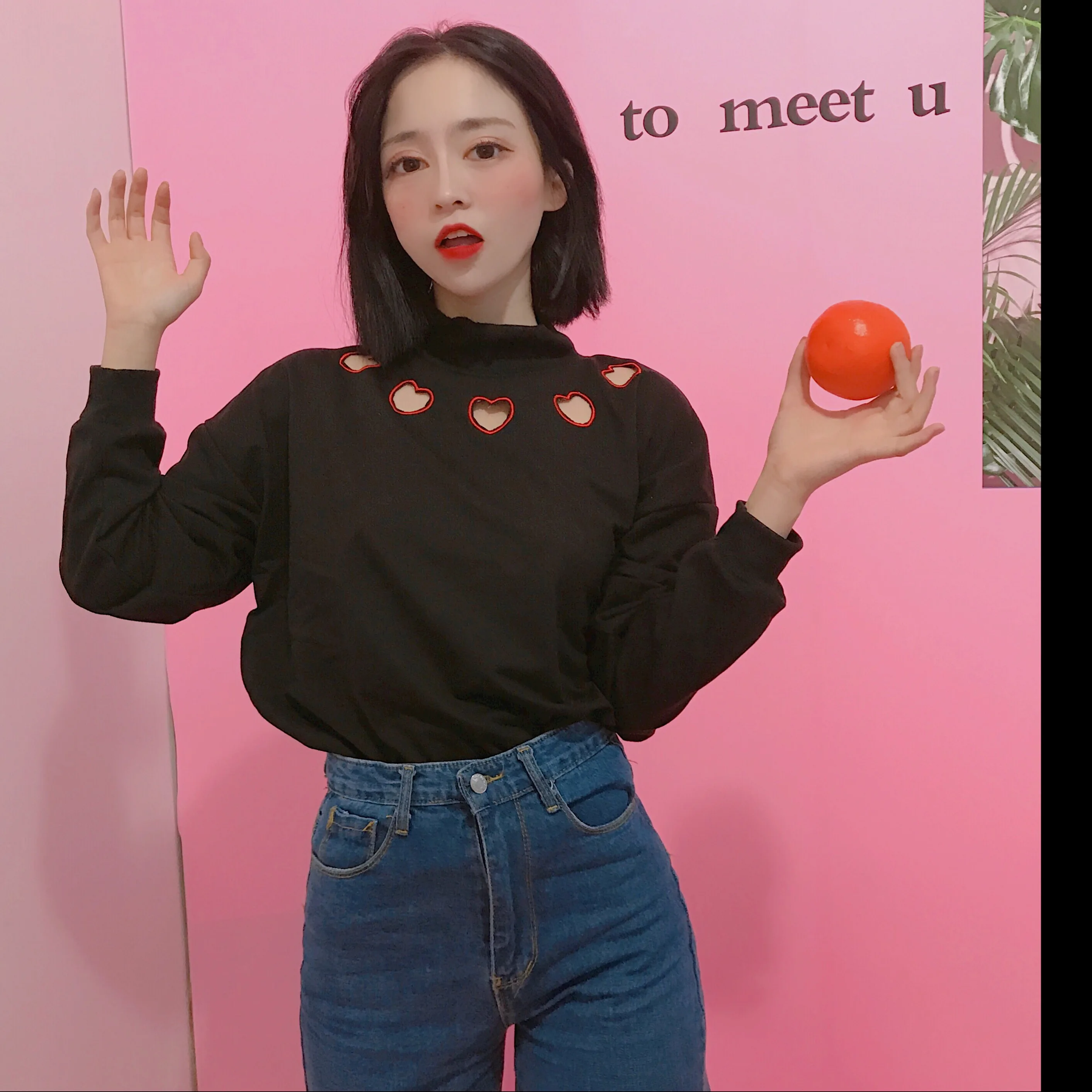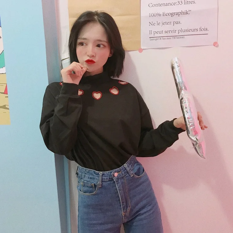 Новинка осени 2017, модные тонкие повседневные милые женские свитшоты с красным сердцем и длинным рукавом