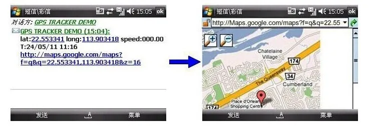 * Реальный трек с помощью SMS на PDA сотовый телефон со ссылкой на карты.