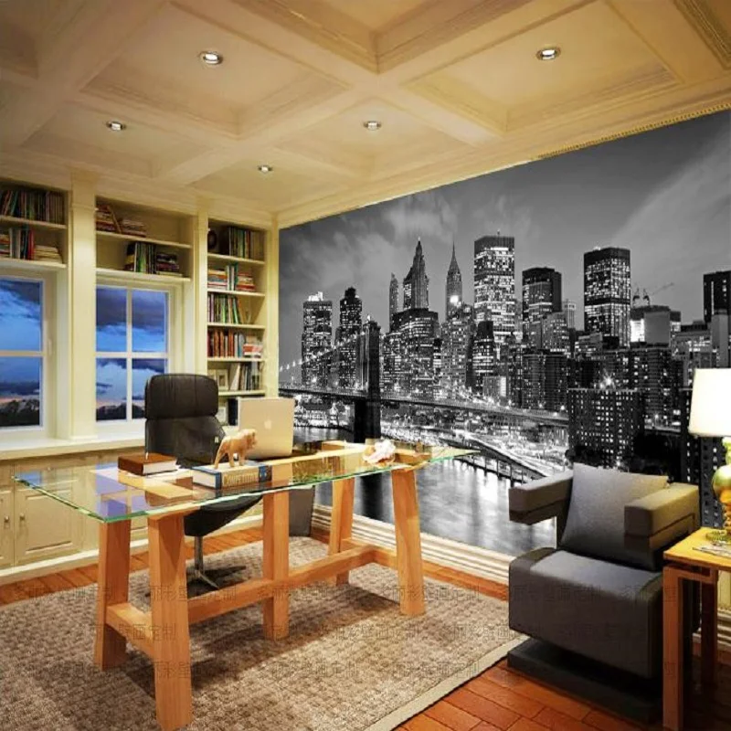 Настенные 3D-обои с изображением ночного пейзажа Нью-Йорка, черно-белые настенные 3d-фрески для гостиной с изображением пейзажа, фона для телевизора, настенные наклейки