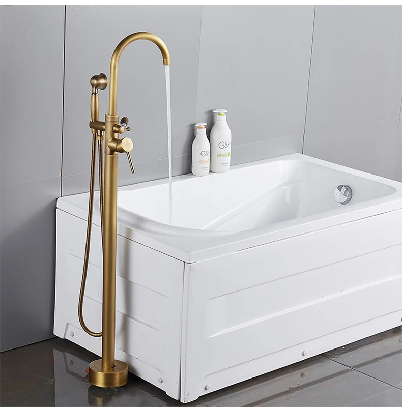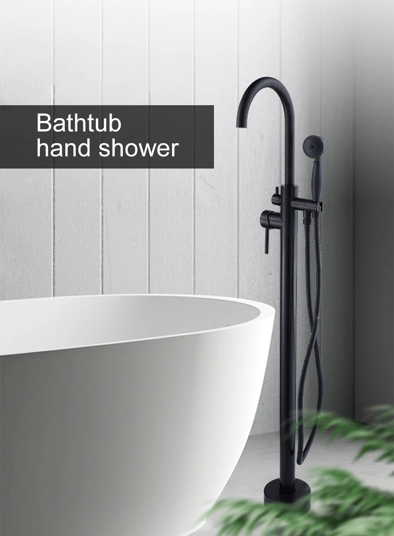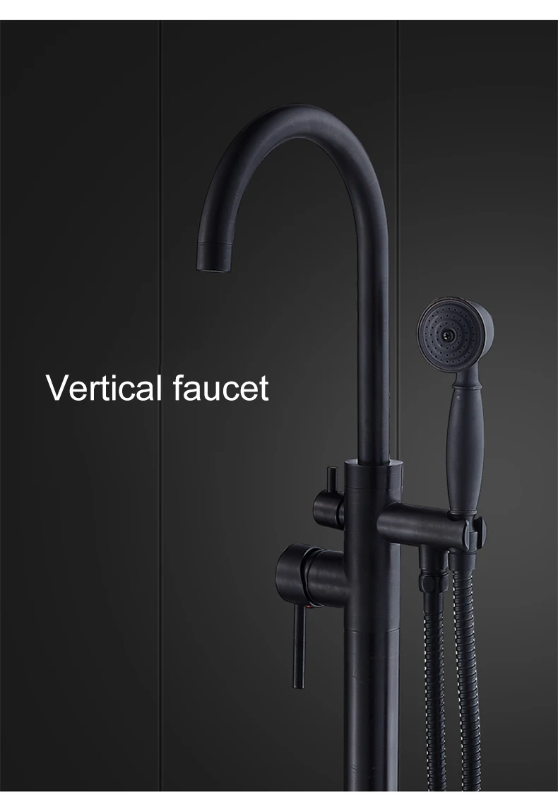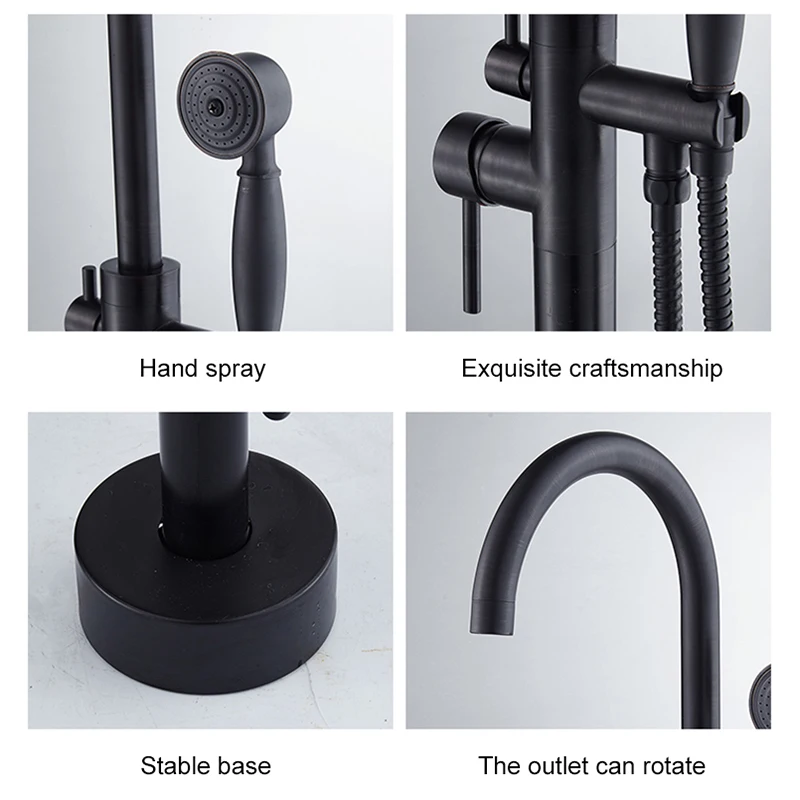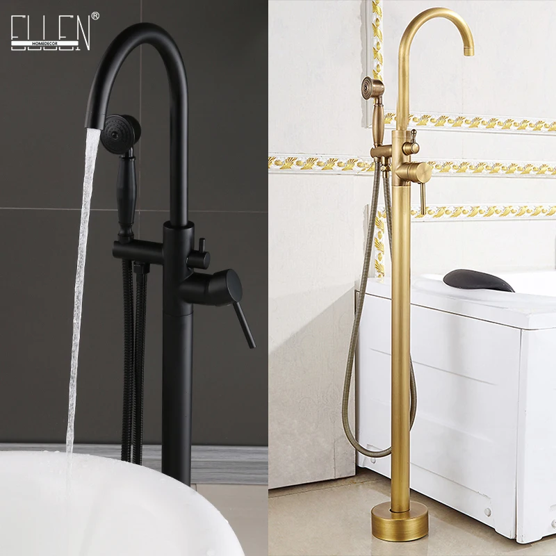 Смесители для ванной с напольной подставкой, античный черный бронзовый кран с ручным душем, напольный кран для ванны, кран с одной ручкой ELS2006