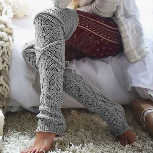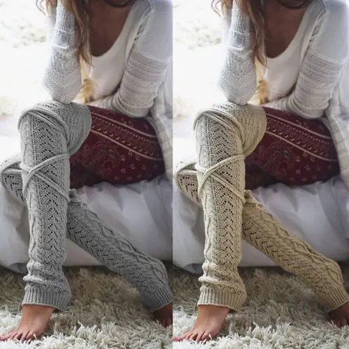 Новые дизайнерские женские зимние теплые одноцветные гетры, Вязаные гольфы, Осенние гофрированные гетры, носки
