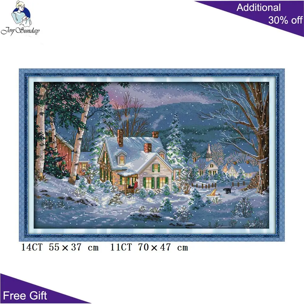 Joy Sunday, Рождество, снежная ночь, украшение для дома F395 14CT11CT, наборы для вышивки крестиком «сделай сам»