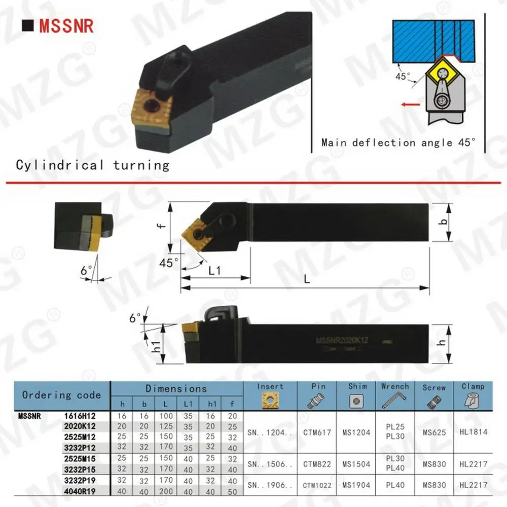 MZG CNC 20 мм 25 мм MSSNR1616H09 токарный станок расточной резец Карбид металла держатель инструмента для резки Внешний держатель токарного инструмента