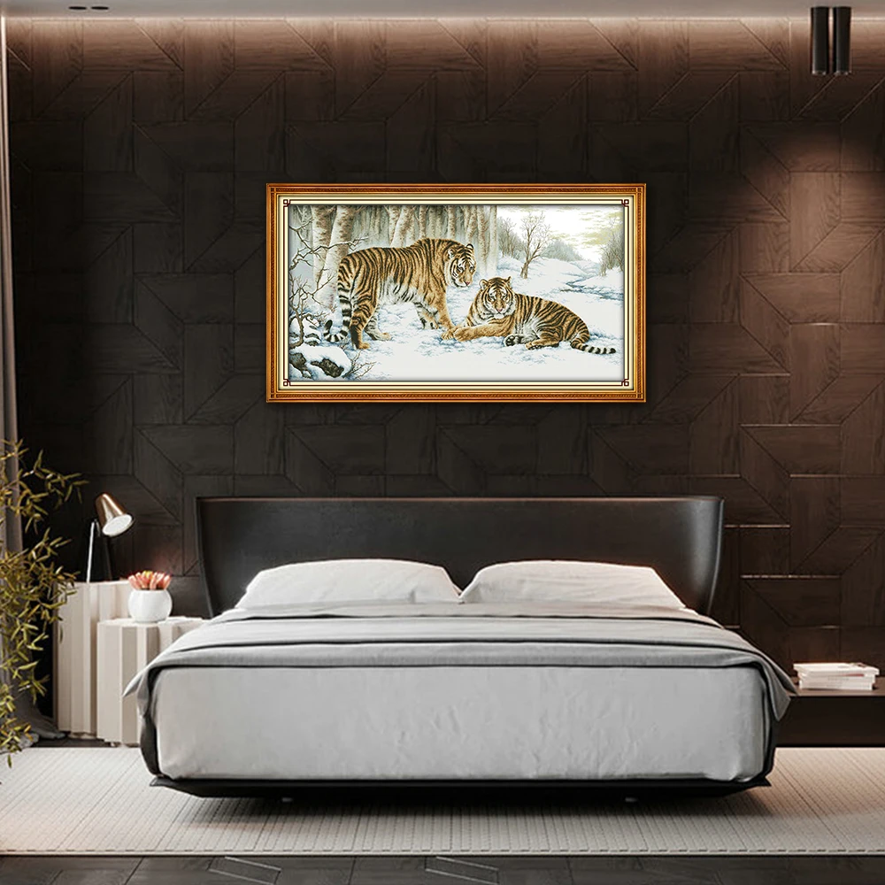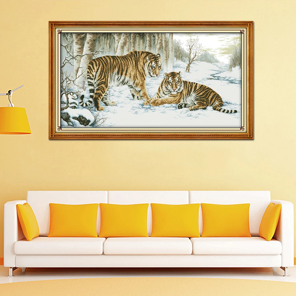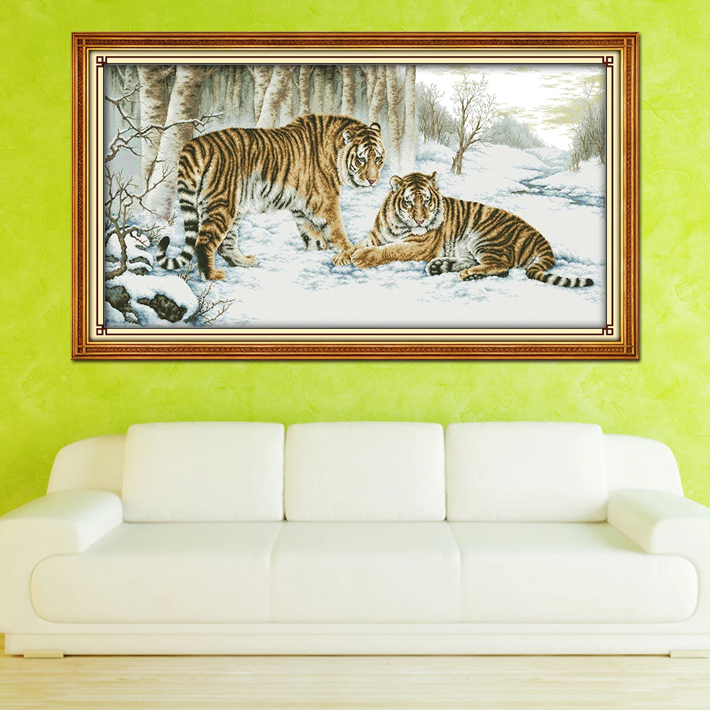 Joy Sunday Tiger вышивка крестиком D210 14CT 11CT штампованная и Счетная домашний декор снежные Животные вышивка наборы для вышивки крестиком