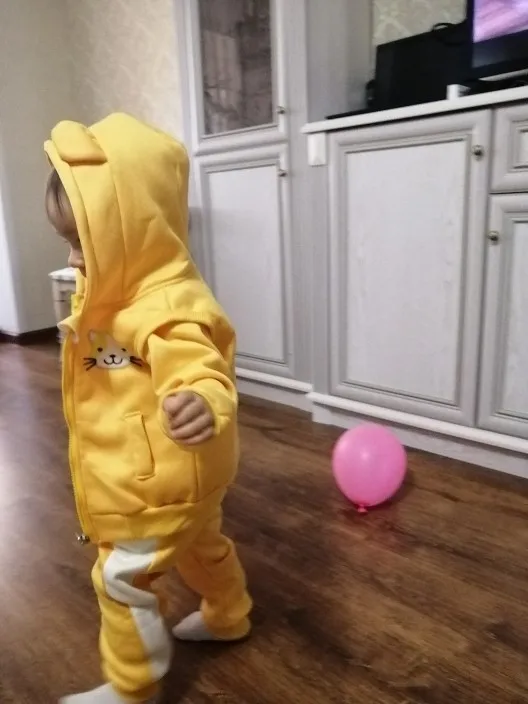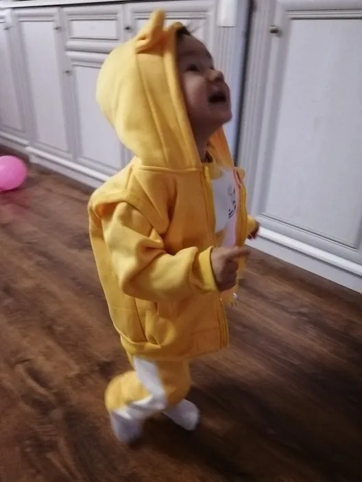 Очень быстрая доставка, милый наряд, цвет (желтый), как на картинке, пушистый флис внутри, все части! Выбирайте на один размер больше!
