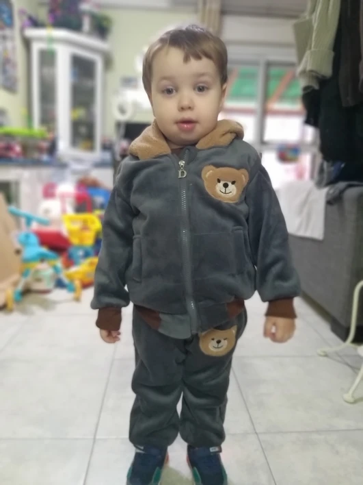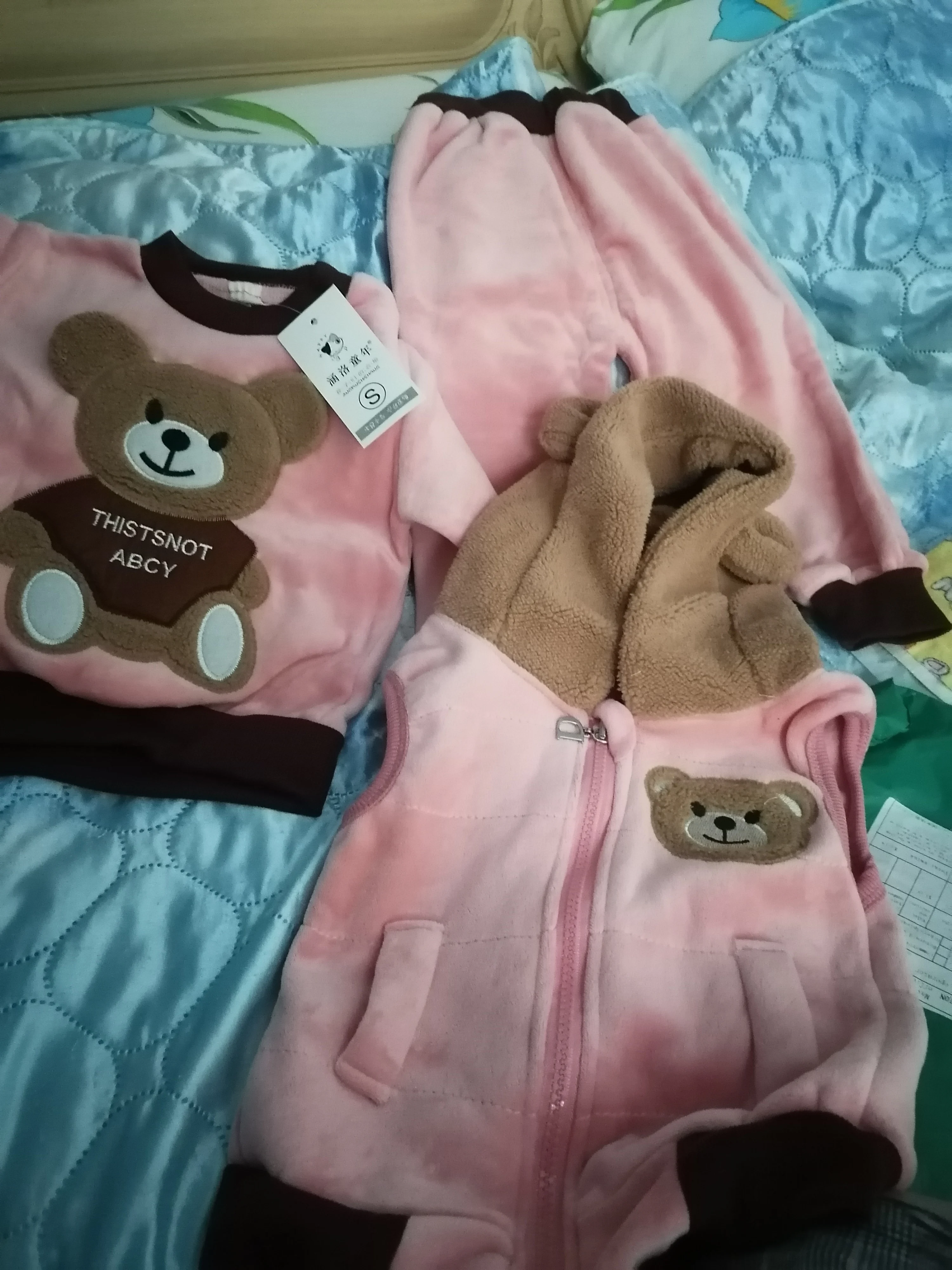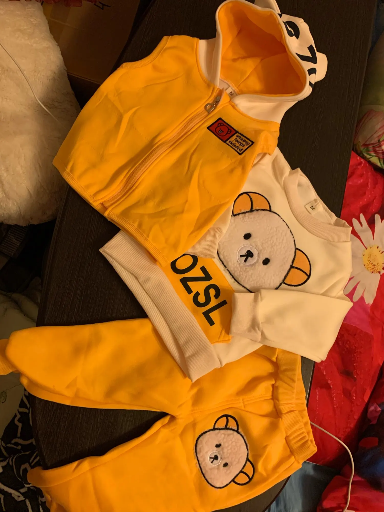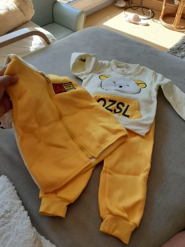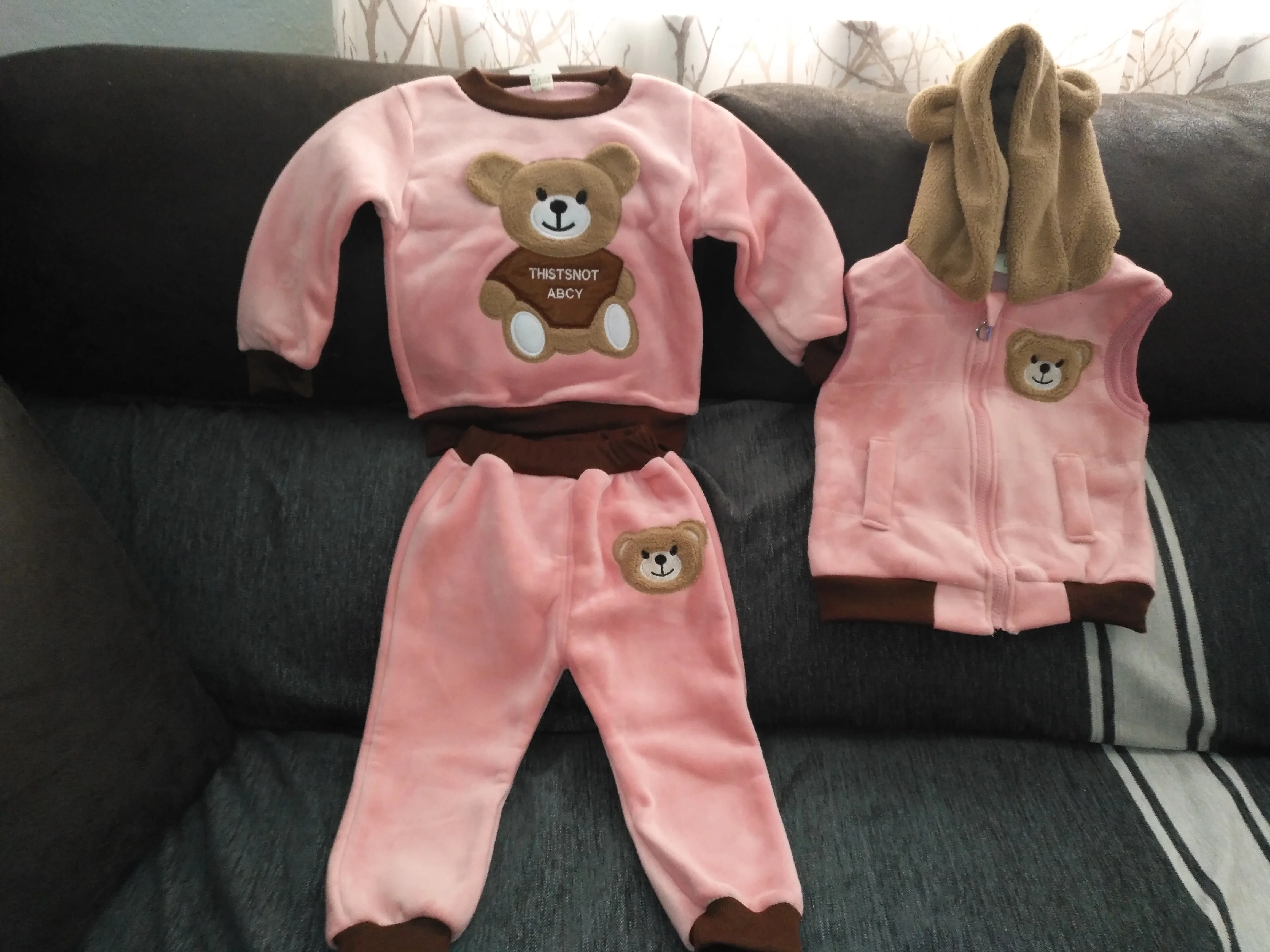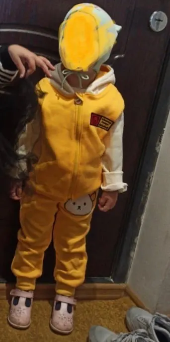 Костюм из 3 предметов - толстовка, штаны и жилет. На 2 года велик, особенно толстовка (видно на фото). А так качество хорошее, мягенький, тёплый, пришёл быстро, трек отслеживался, с продавцом не общалась, но и потребности такой не было, все и так было в порядке. На пару сезонов точно хватит.