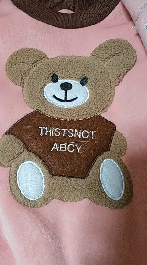 Костюм-бомба.ребенку идеально подошёл на 2.5 года.он худенький.Очень мягкий.При стирке мишка (рисунок) не полинял, ничего не окрасилось.все