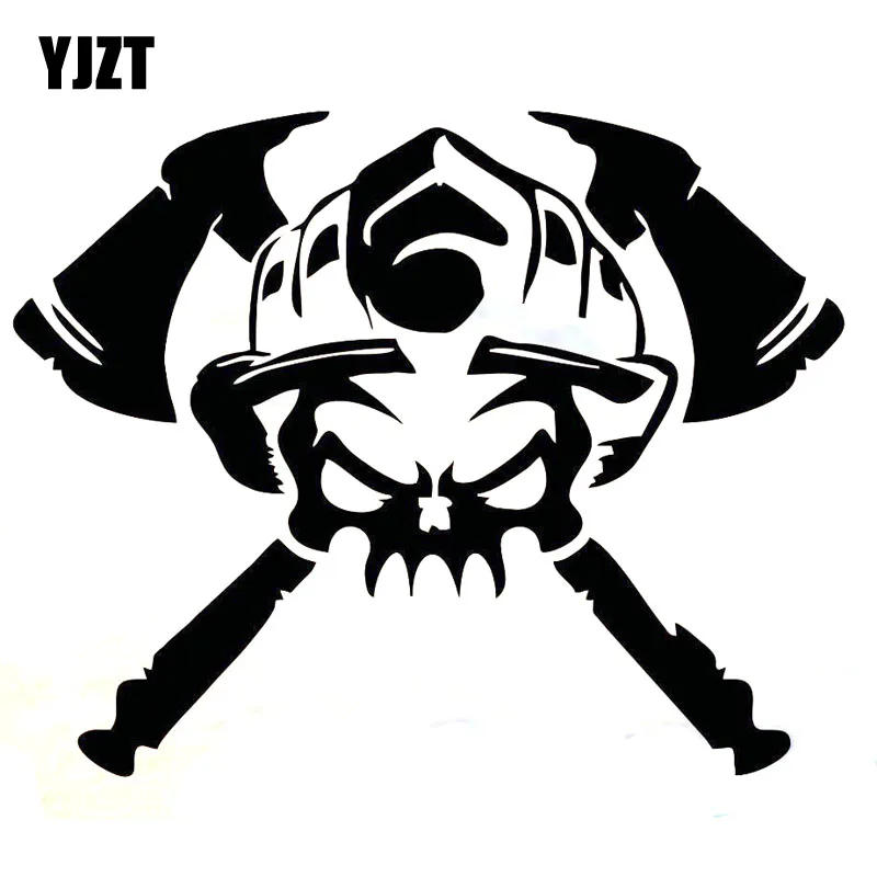 YJZT 15,3x12,2 см, Виниловая наклейка с изображением огненного истребителя, черепа, внедорожника, забавный стиль автомобиля, черныйсеребряный цвет