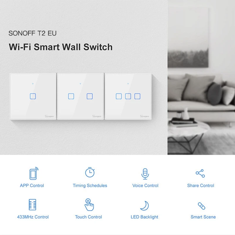 Интеллектуальный выключатель света SONOFF TX T2US Smart Wifi сенсор...