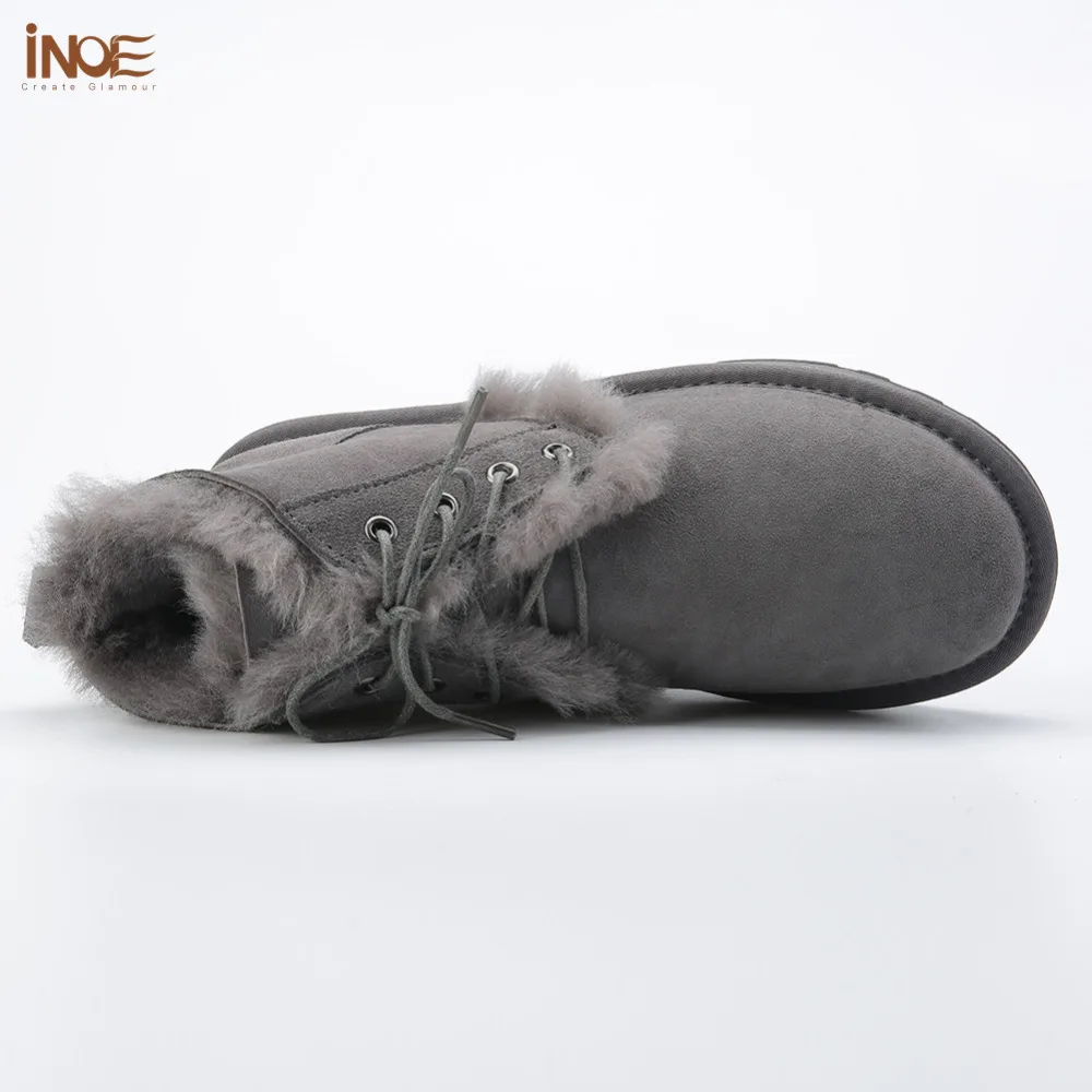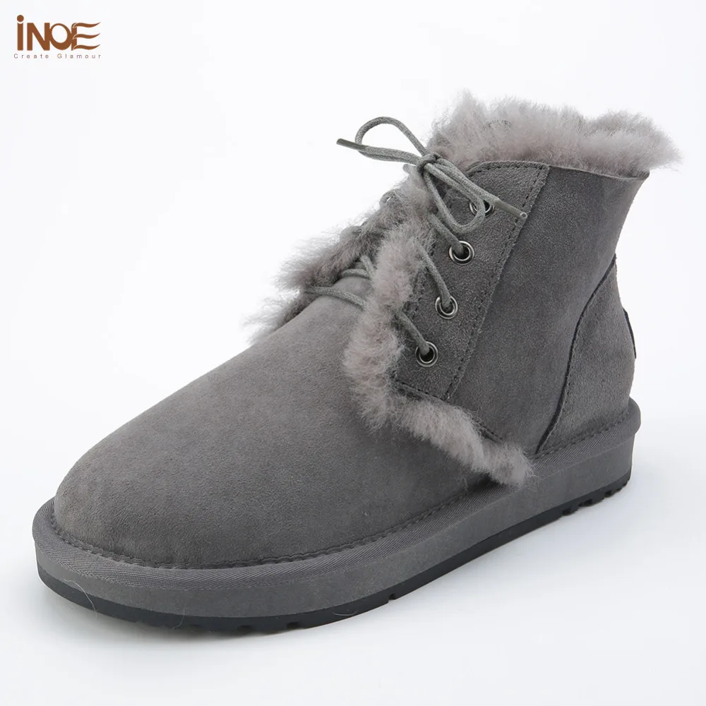 Модные женские зимние ботинки из натуральной овечьей кожи на шнуров...
