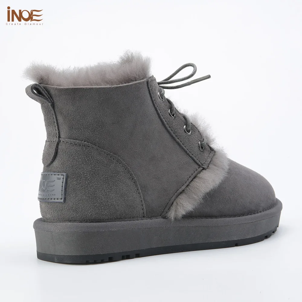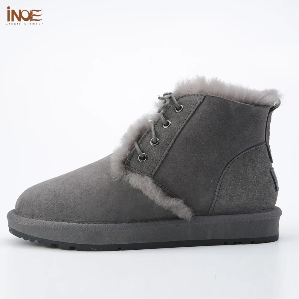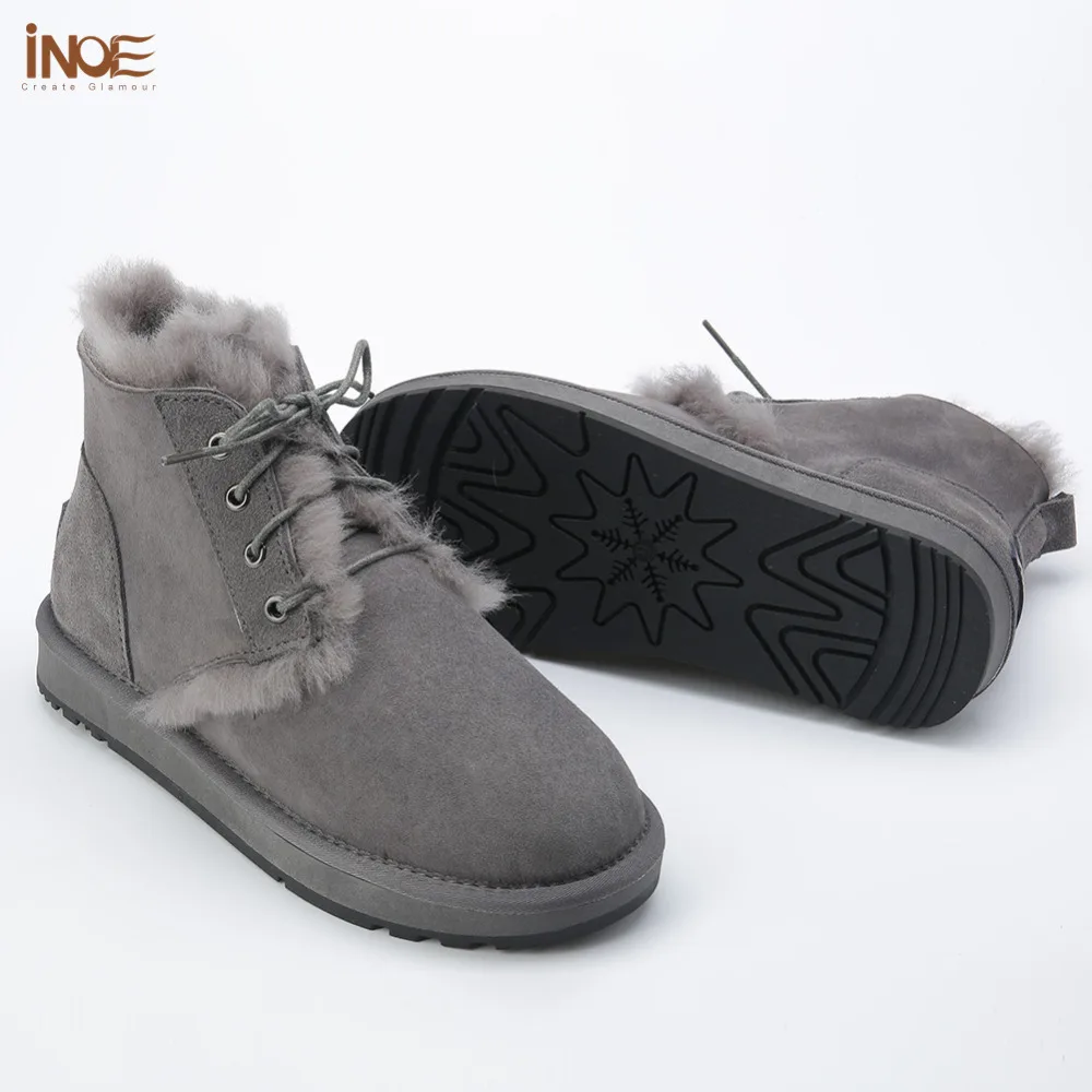 Ботинки мужские зимние из натуральной овечьей кожи, на меху, со шнуровкой