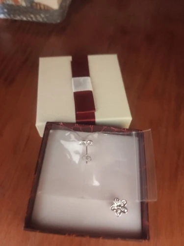 Чудесные сережки,совсем не большого размера. Пришли за 16 дней в Новосибирск. Сбоку проба,думаю что это стерлинговое серебро,надеюсь не почернеют ) в подарок идёт маленькая коробочка,такая и на подарок подойдёт ) заказом довольна )