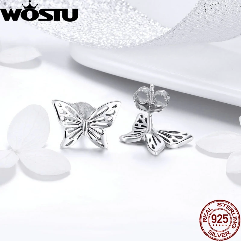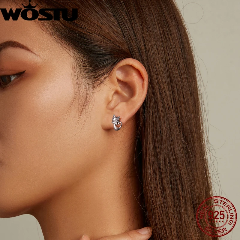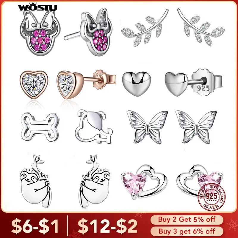 WOSTU, 100% Стерлинговое Серебро 925 пробы, серьги-гвоздики, цветок, сердце, звезды, кот, жемчуг, маленькие серьги для женщин, свадебные ювелирные изделия для помолвки