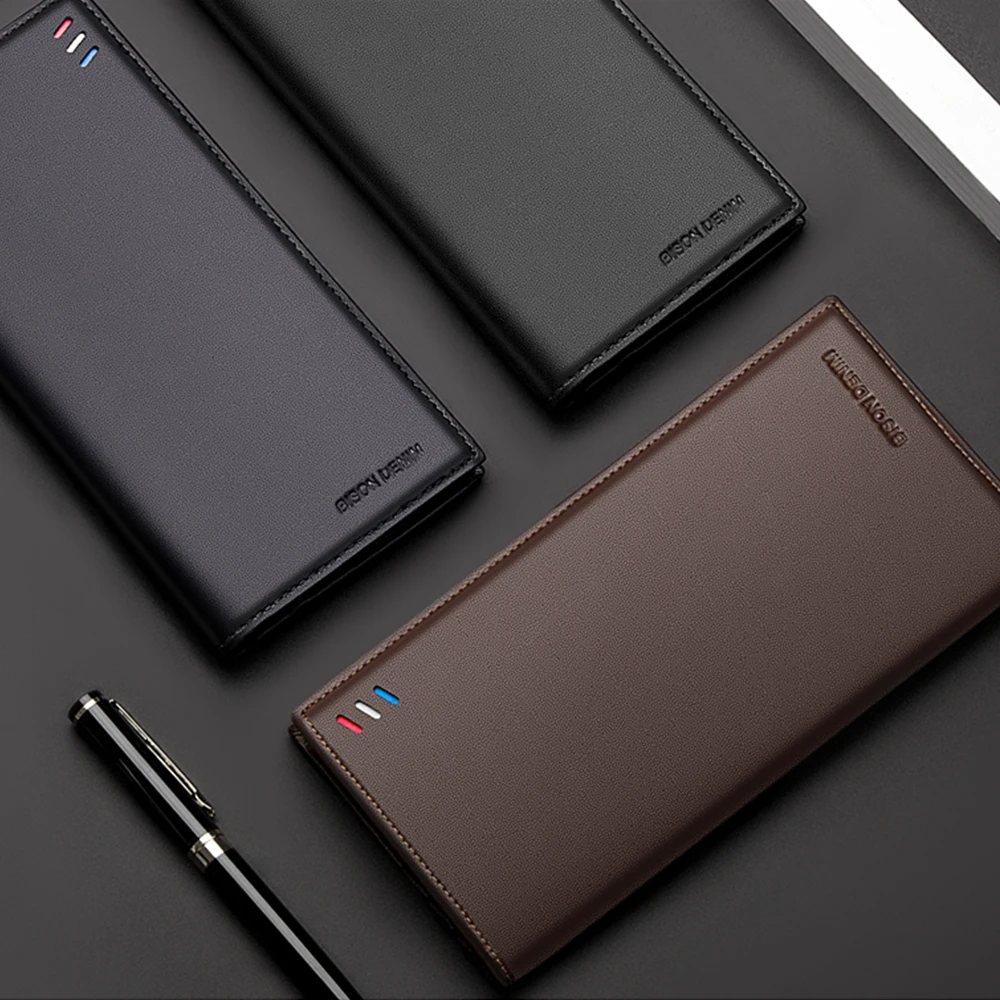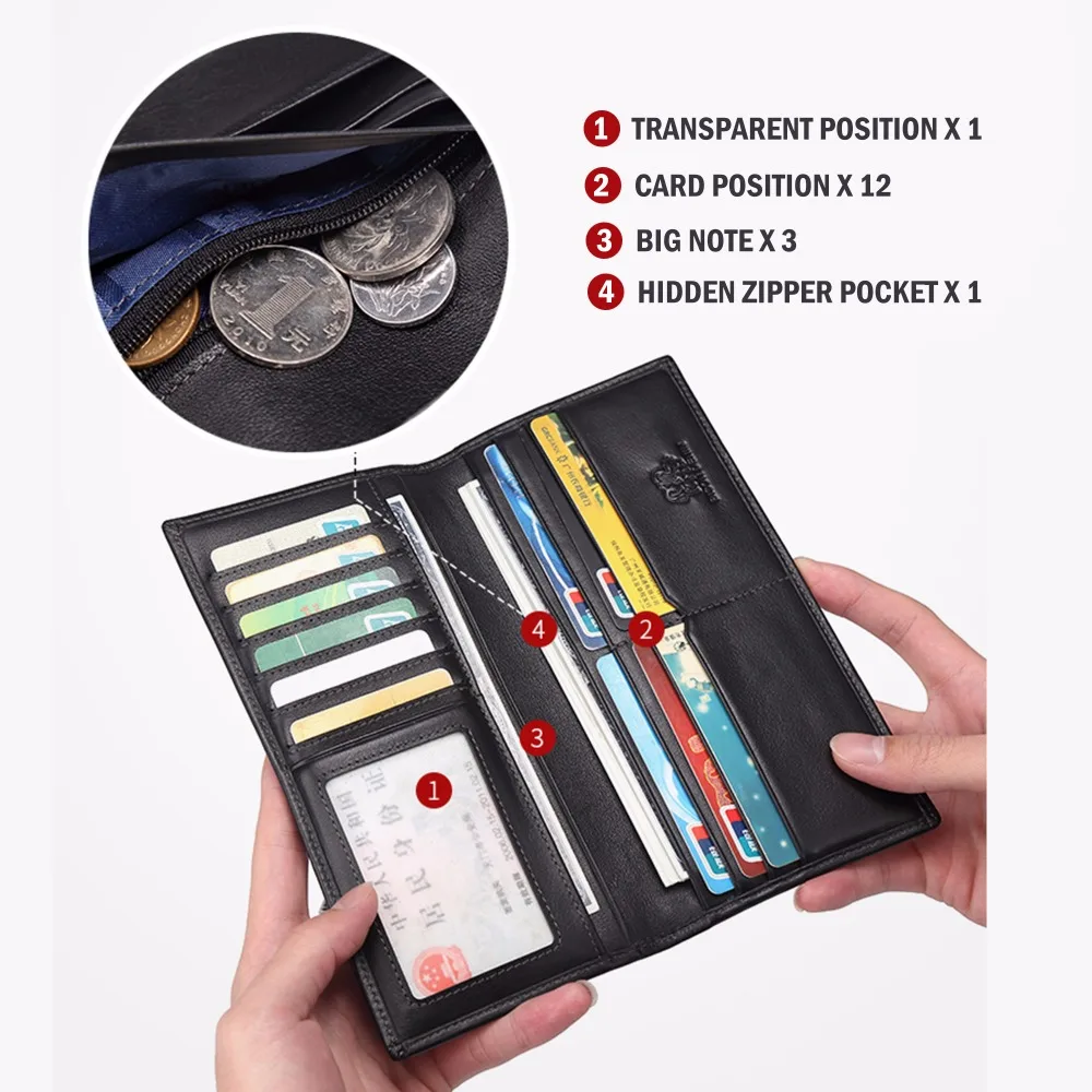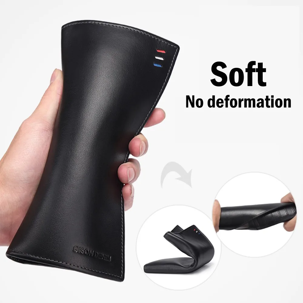 Мужской деловой кошелек BISON DENIM, длинный тонкий кошелек из коровьей кожи, клатч, кошелек для карт и ID, N4391
