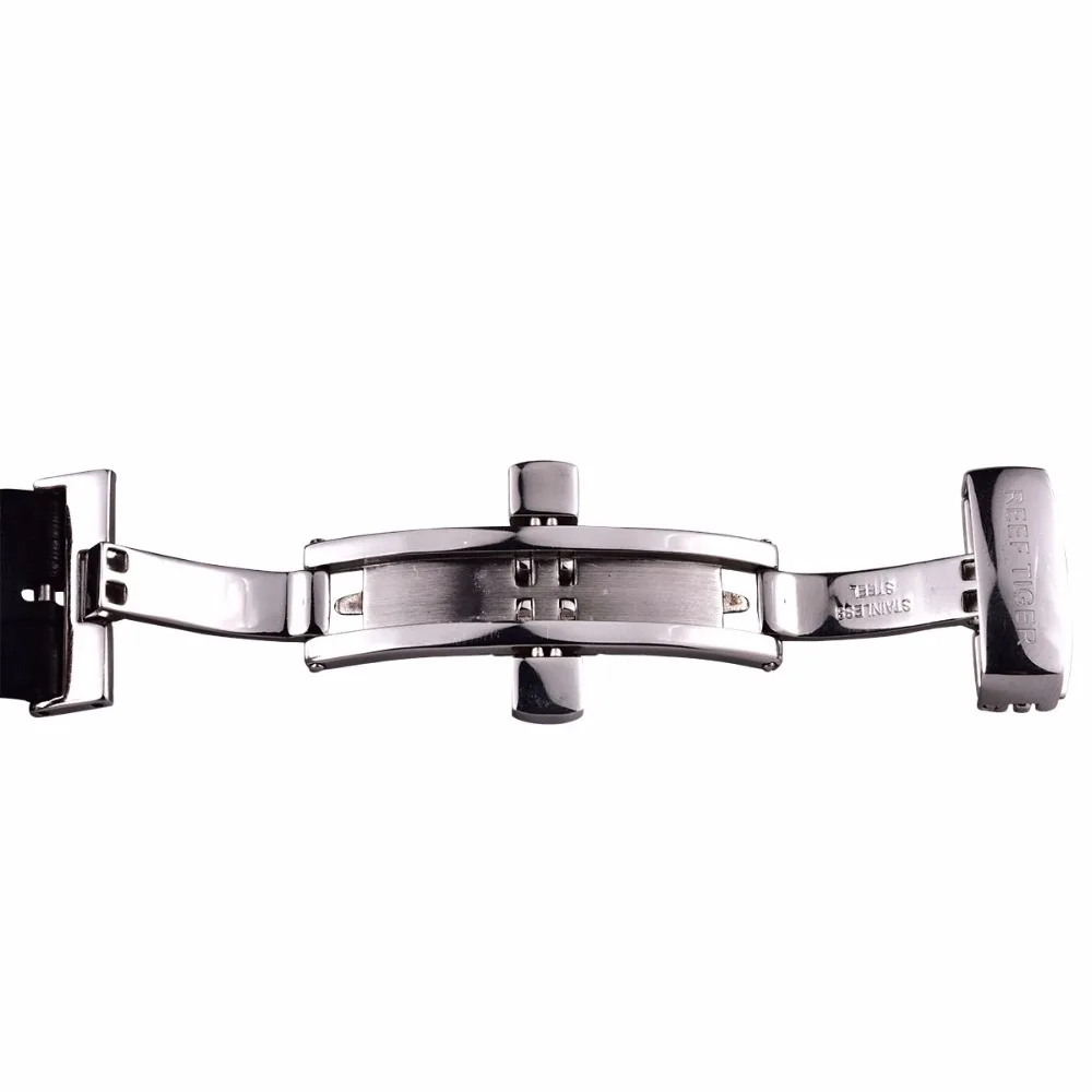 Дизайнерские повседневные часы Reef TigerRT с синим циферблатом, часы из нержавеющей стали, автоматические часы с ремешком из натуральной кожи RGA1693