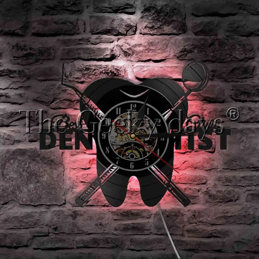 Стоматологическое Офисное оборудование для отбеливания зубов, настенные часы с виниловой пластиной светодиодный Ной подсветкой, декоративное освещение