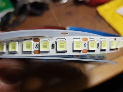 Доставили светодиодную ленту 5054 5 метров,она отличалась от оригинала на странице продавца.У светодиодной ленты которую доставили: 1 резистор на 3 светодиода,у оригинальной ленты 2 резистора на 3 светодиода.У светодиодной ленты которую доставили срок службы будет намного меньше, так как стоит только 1 резистор,хотя должно быть два резистора.Будьте внимательны! Пришлось открыть спор.
