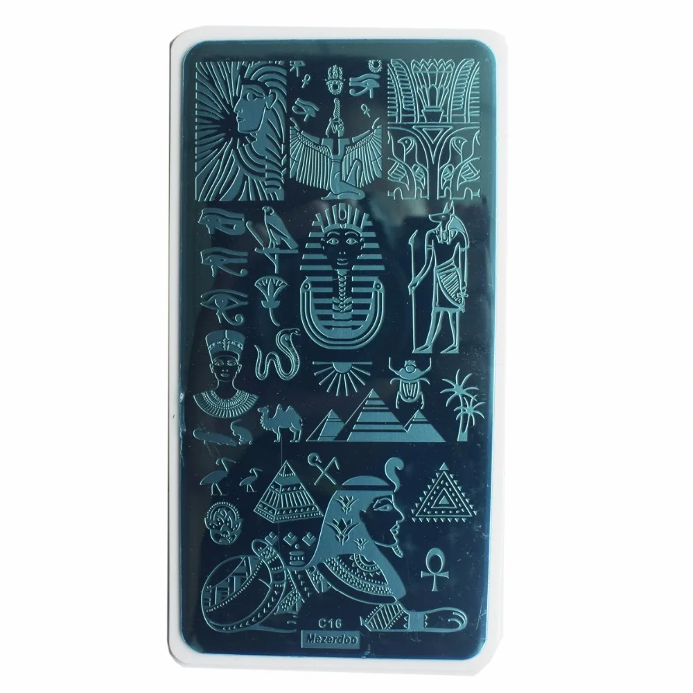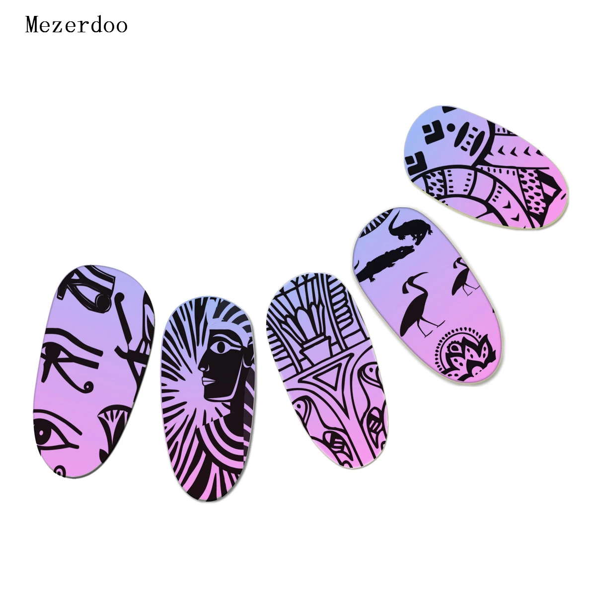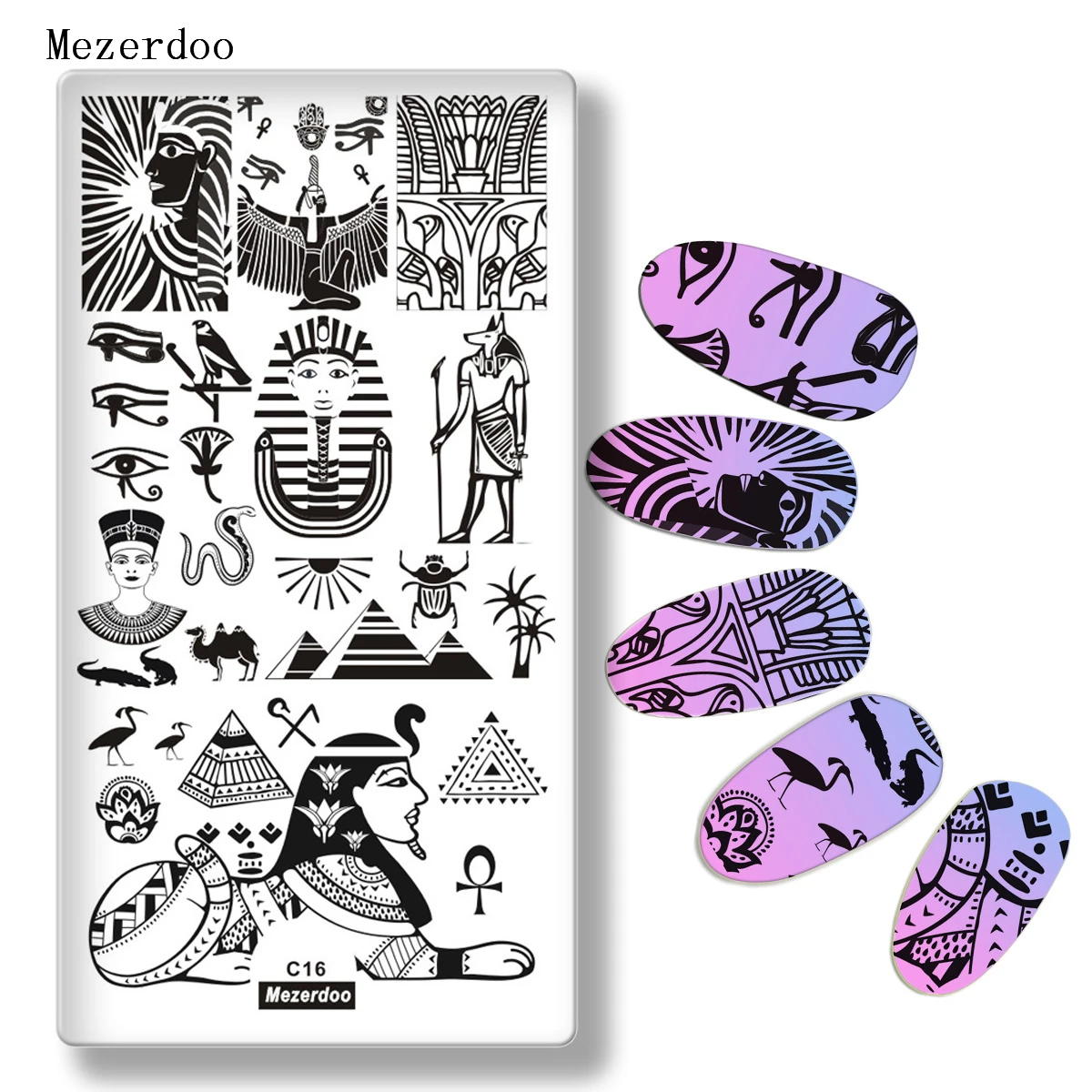 Трафареты для стемпинга изображений Mezerdoo, пирамида, змея, Египетская тема для нейл-арта, пластины для самостоятельного маникюра, шаблон для печати, инструмент C16
