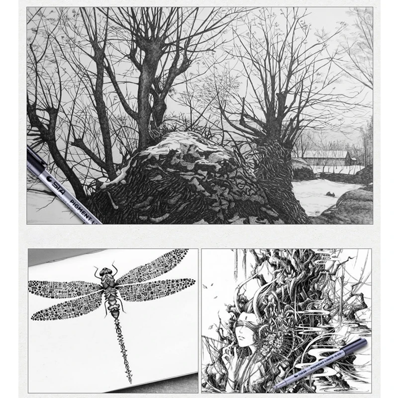 Маркеры для набросков STA, пигментные маркеры разных размеров на во...