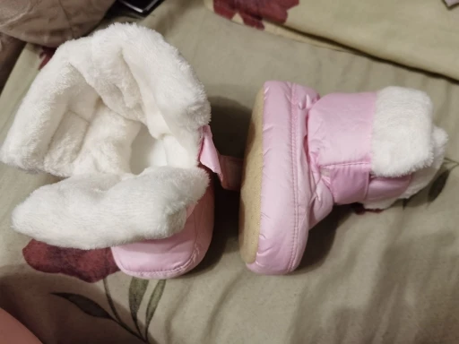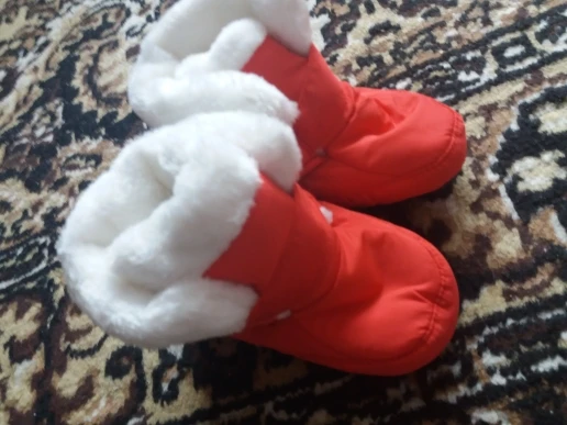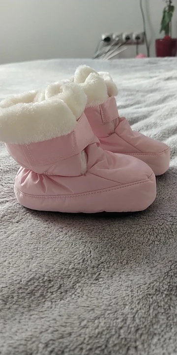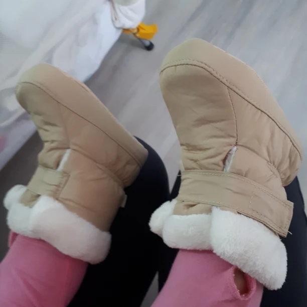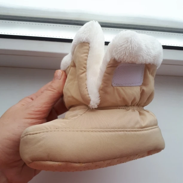 Получила сапожки-пинетки довольно быстро. Качество просто супер, для украинской зимы холодновато,зато осенью в самый раз и не переживать,что ребенок замёрзнет. Очень приятная мягкая ткань внутри сапожек, стелька тоже пухнастая и вынимается. Немного разочаровала на одном сапожке липучка, она плохо пристрочена была... Заказ пришел новой почтой.