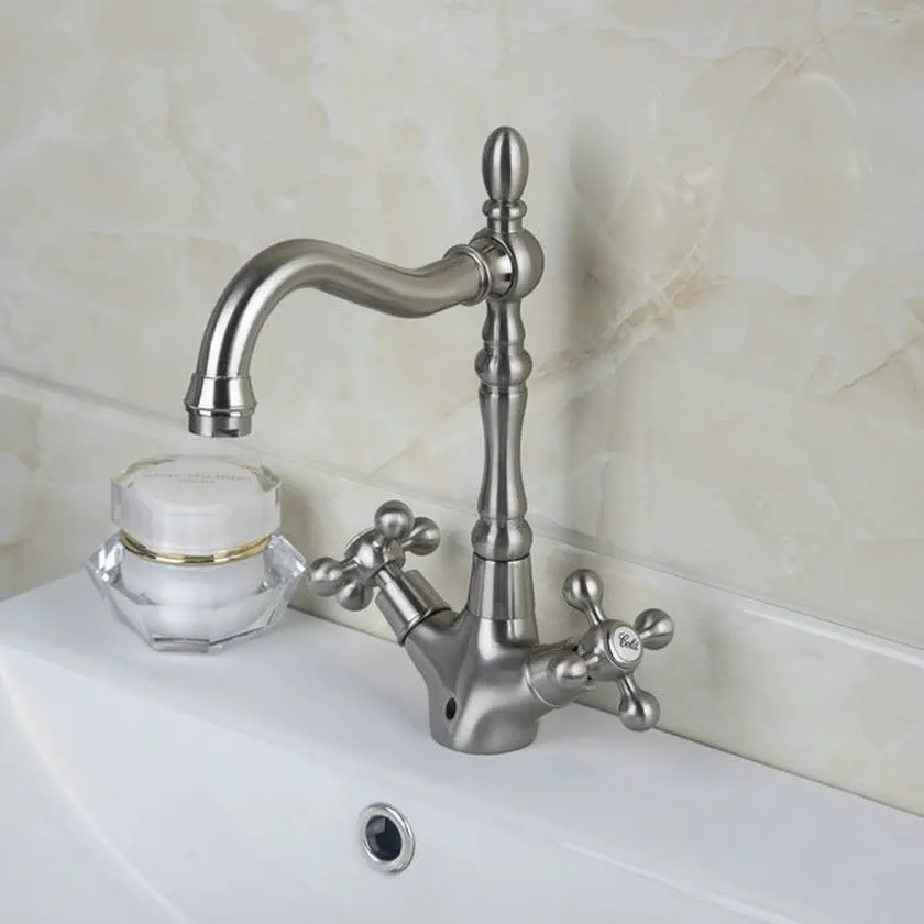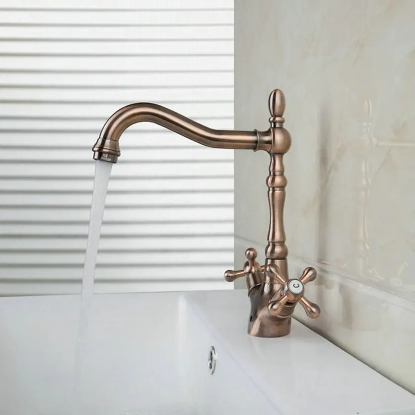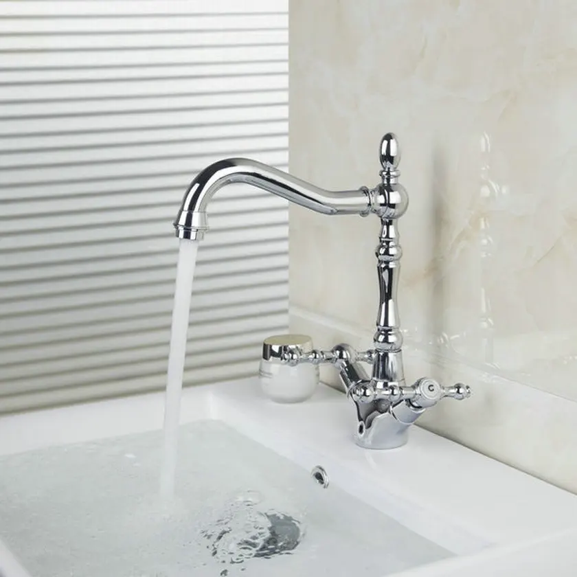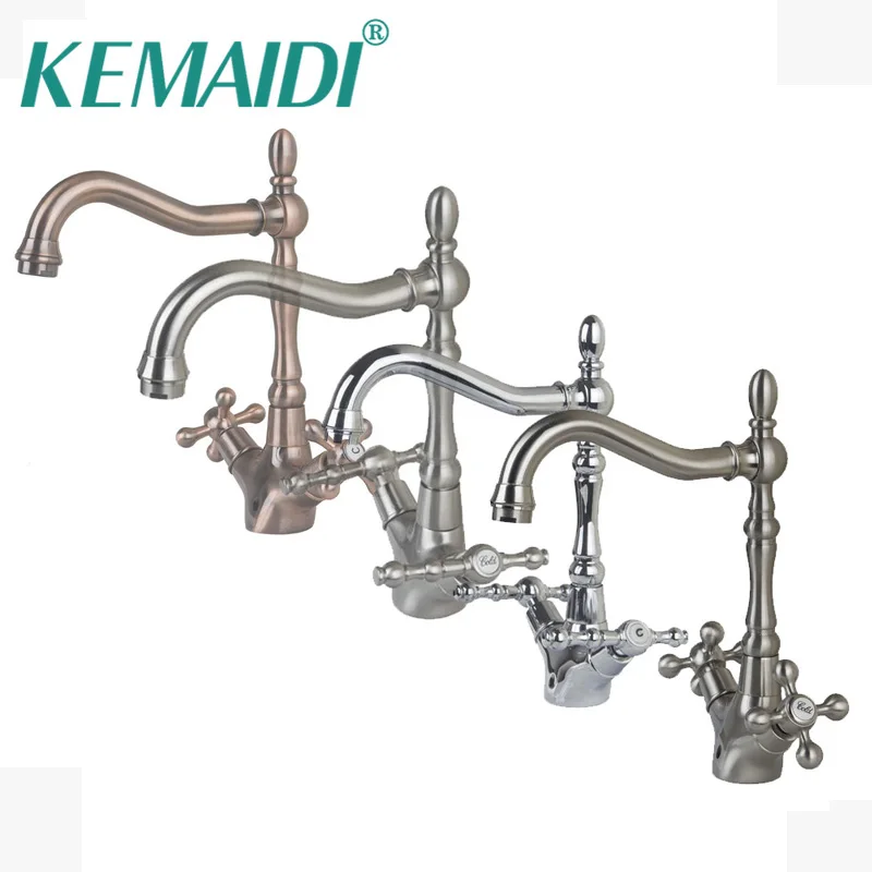 Смесители для раковины KEMAIDI, антикварная латунь, хром, матовый никель, смесители для раковины в ванной комнате, ретро 2 ручки, 1 отверстие, установленный на палубе