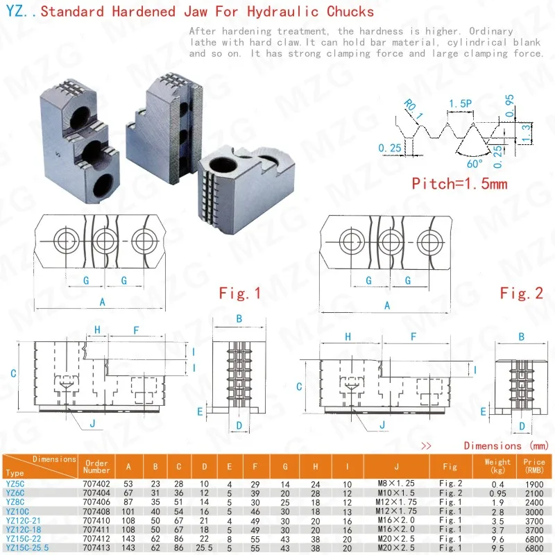1.MZG мягкая челюсть особенности товараПараметры спецификации мягкой челюсти MZG