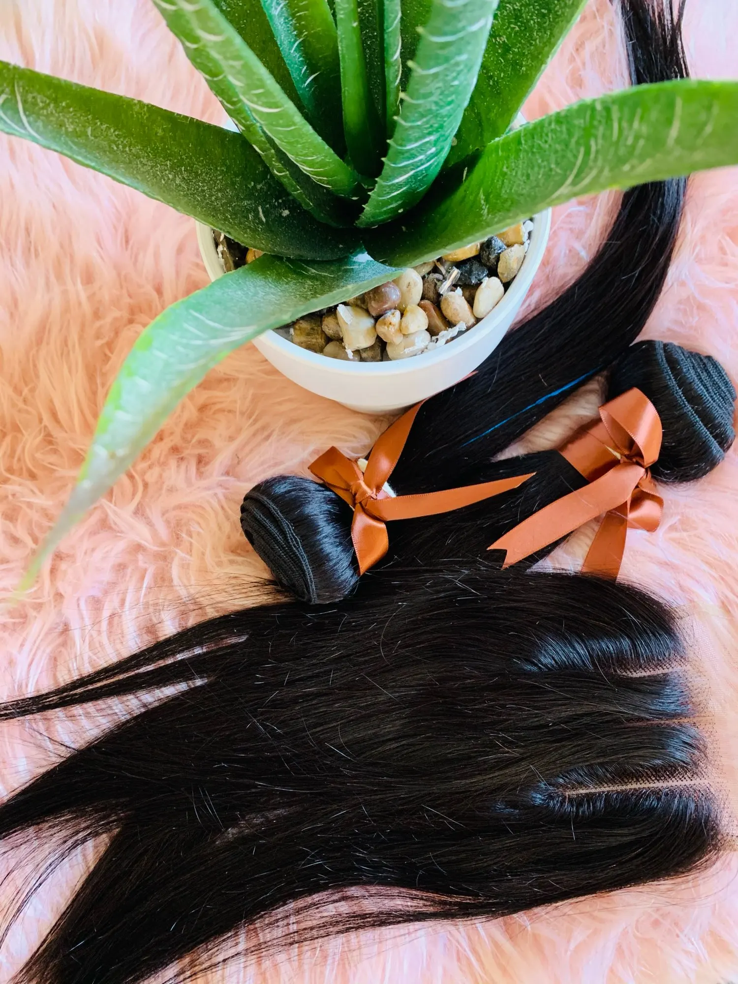 Bundle and Closure arrived within the expected time. The products are of good quality as described. I would have given 5 stars had the product been in Sleek packaging.