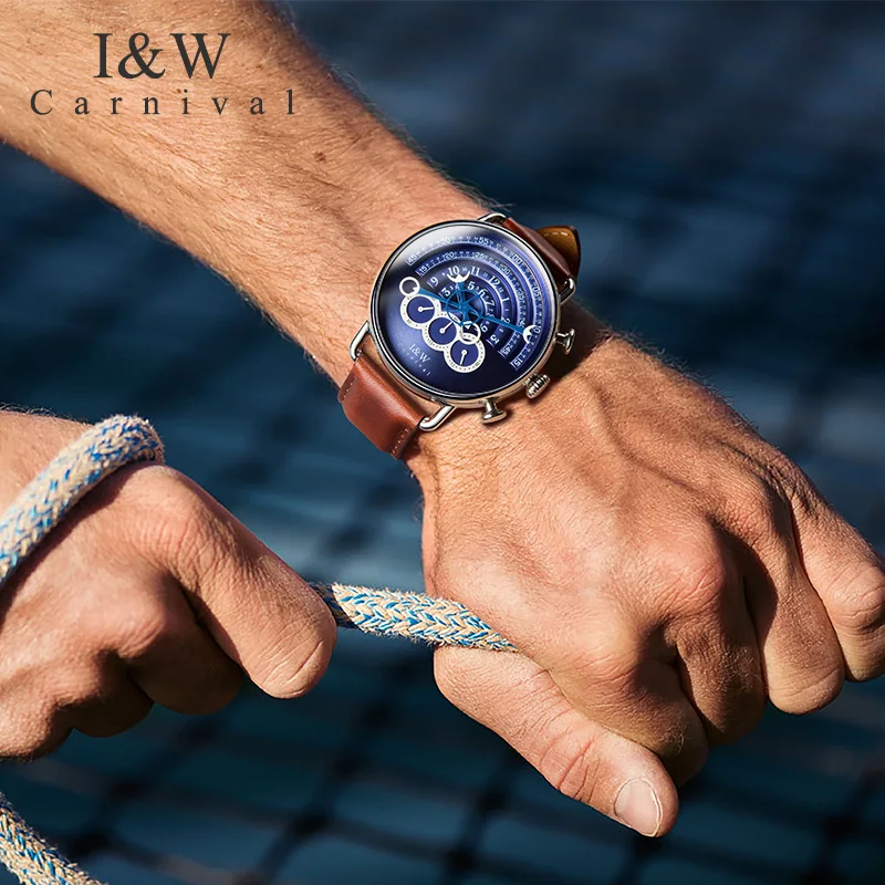 Карнавал IW роскошный бренд подиумный уникальный дизайн часы мужские хронограф секундомер часы с кожаным ремешком relogio saat reloj montre