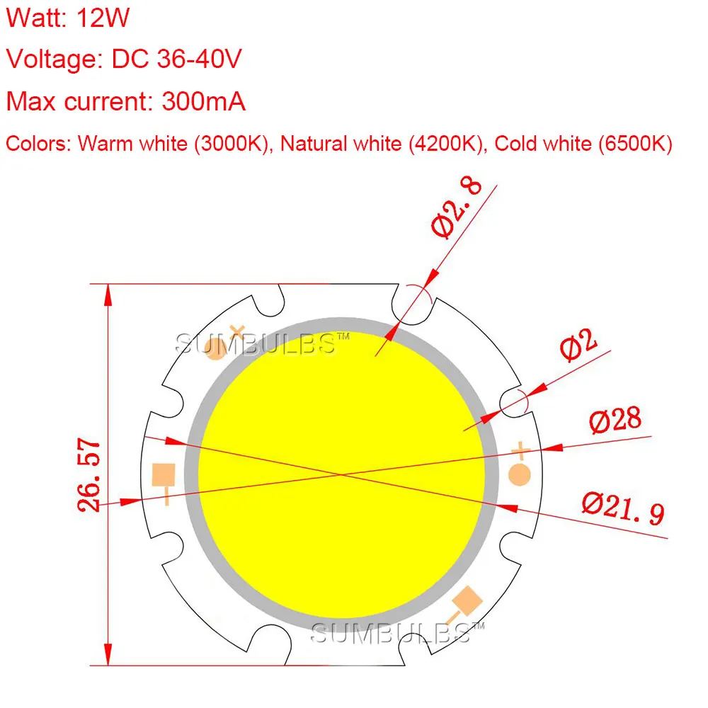 Основные характеристики лампочек 12 Вт 2820 светодиодный источник COB светильник