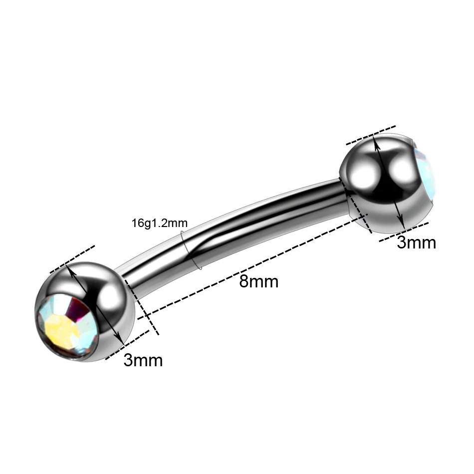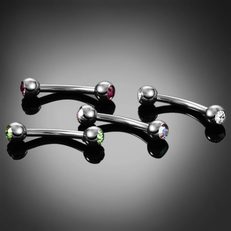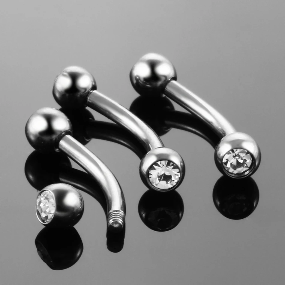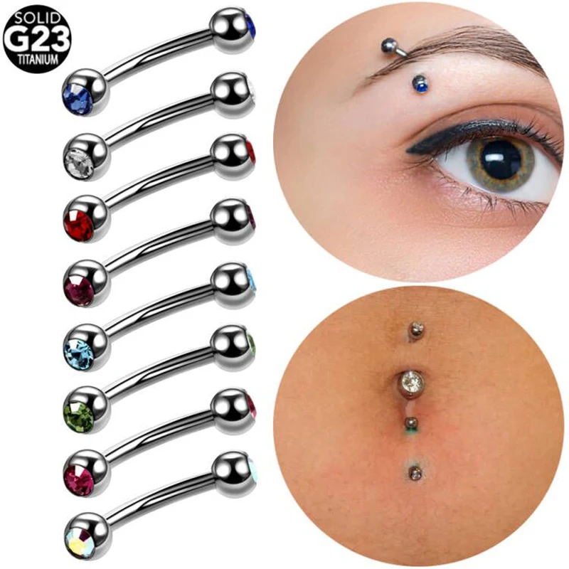 1 шт.партия, титановые пирсинг для бровей, банан, штанга, двойные камни, стержень для бровей, внешняя резьба, изогнутый язык