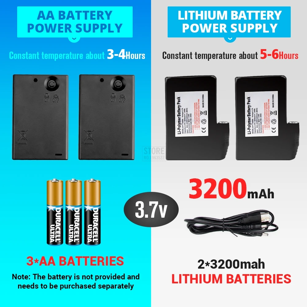 Получил, работают. По первым тестам. В помещении! нагрев до ощутимого тепла чуть более 5 минут. А тепер самое интерсное-греет только тыльная сторона ладони. Не внутренняя. Подогрева в пальцах не заметил! Ждем холодов, дабы полноценно проверить. И да - сразу перевел на 18650, нагрузка хорошая. За 10 минут в тепле на красном режиме с 4.1 до 3.95 за 15 минут.