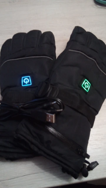 Пришли с заряженными аккумуляторами. Пошиты хорошо. Толстые и тёплые сами по себе. При включении почувствовал тепло через минуту. Есть защита от перегрева, диод на перчатке переключается на другой цвет. На указательных пальцах накладки для работы с сенсорным экраном.