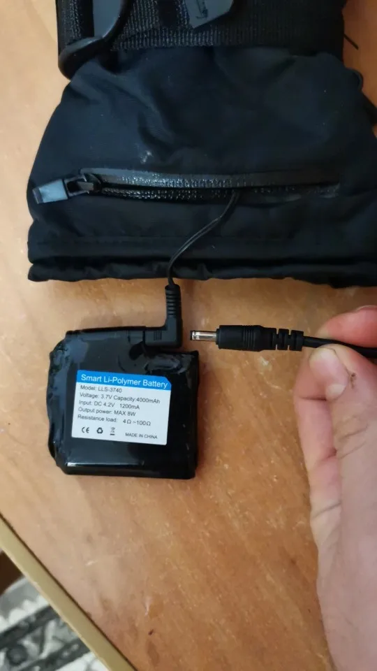 Качество пошива хорошее, нитки почти не торчат, материал плотный. Из минусов брезентовая ткань со стороны ладони, на морозе дубеет и пологаю со временем полопается. Размер универсальный, на мою ладонь подошёл хорошо. Греют ооочень слабенько, поставил 3 аккамулятора АА, ёмкость одного 2300 mAh, 1.2 v, хватает их примерно на 4 часа. Сами по себе, без подогрева перчатки достаточно теплые, в - 20; - 25 нормально. Не ждите от них чуда, будьте готовы купить аккамуляторы и зарядник. Родных аккамуляторов на 4000mAh думаю будет хватать часа на 2. Если купить провод с разъёмами как на фото, или заказать стельки с подогревом, там такой провод, то можно запитать перчатки от повербанка.