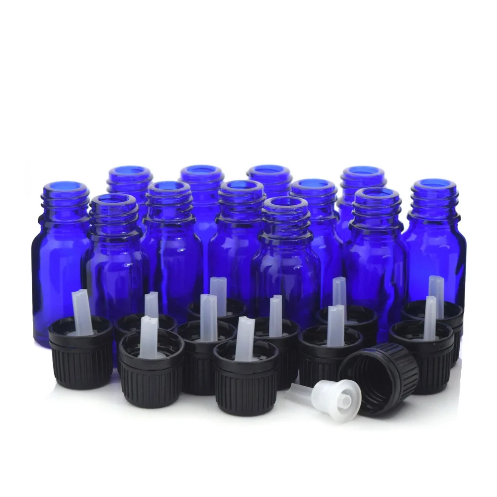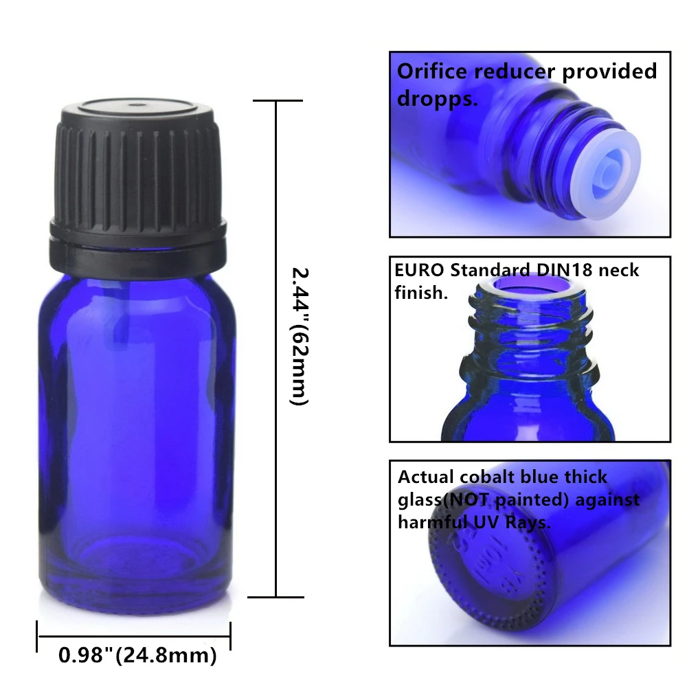 12 шт. 10 мл кобальтовые голубые стеклянные бутылки со встроенным редуктором с видимой крышкой для ароматерапии эфирными маслами 13 унции