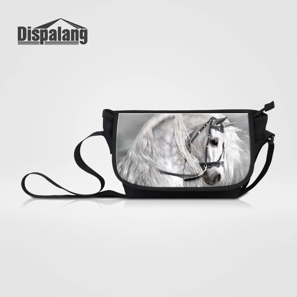 Холщовые сумки-мессенджеры для женщин, сумки через плечо с принтом лошади для подростков, школьные ранцы с животными, портфели унисекс
