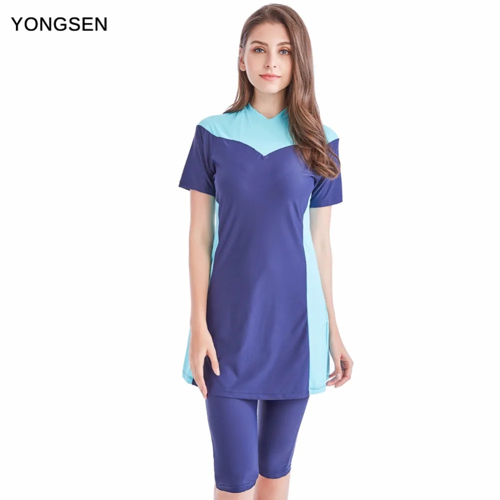 Женский скромный Мусульманский купальник большого размера YONGSEN, хиджаб Буркини с коротким рукавом, Мусульманский купальник мусульманской формы, спортивная одежда