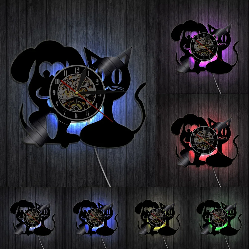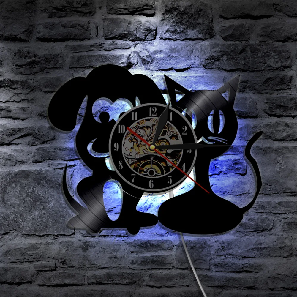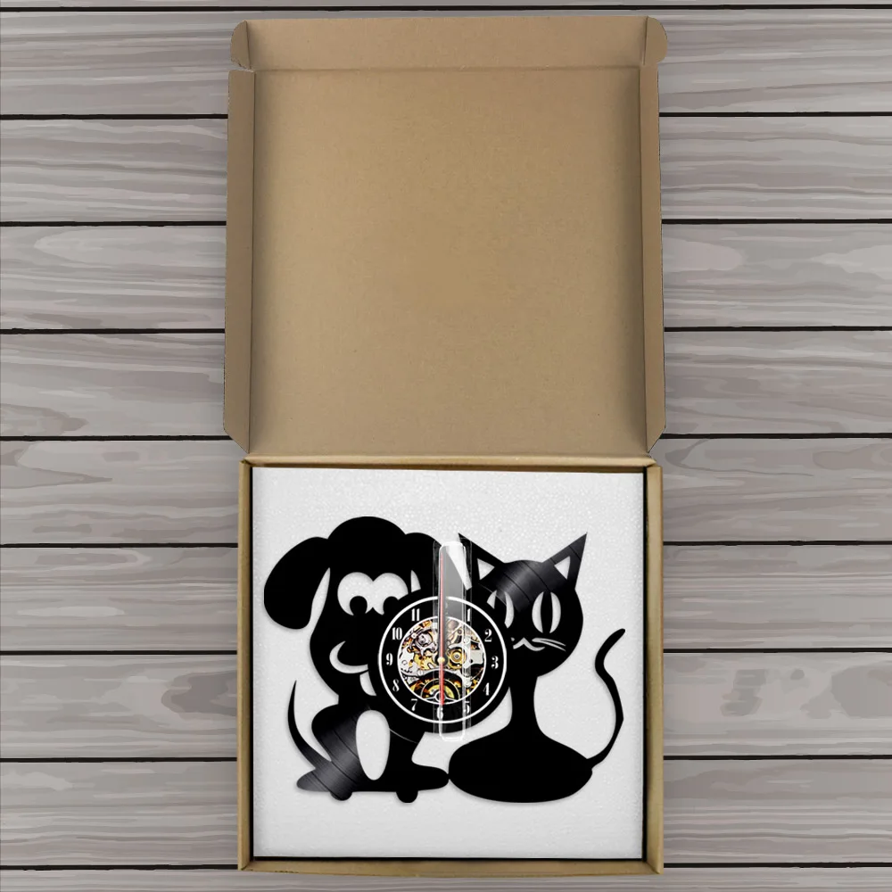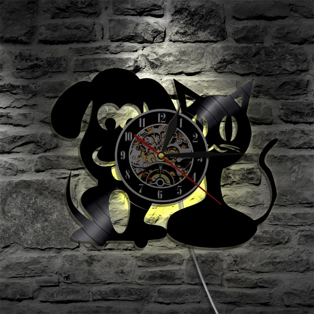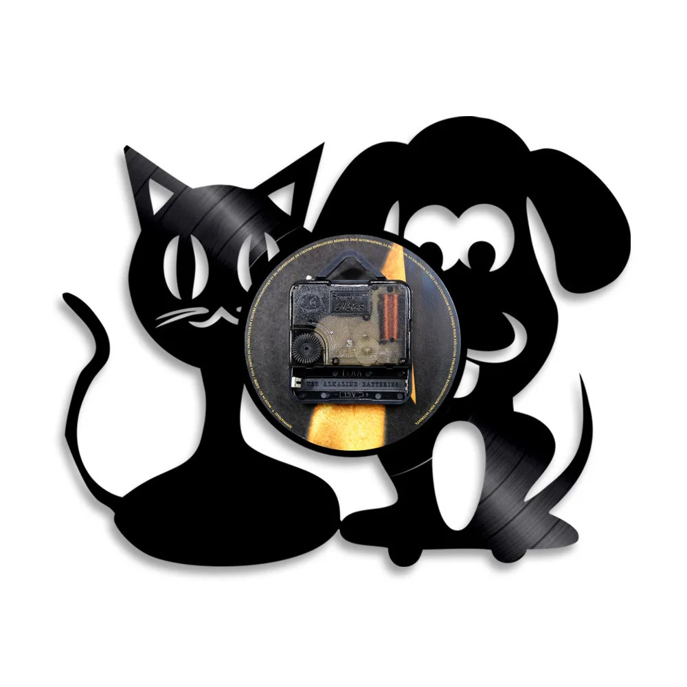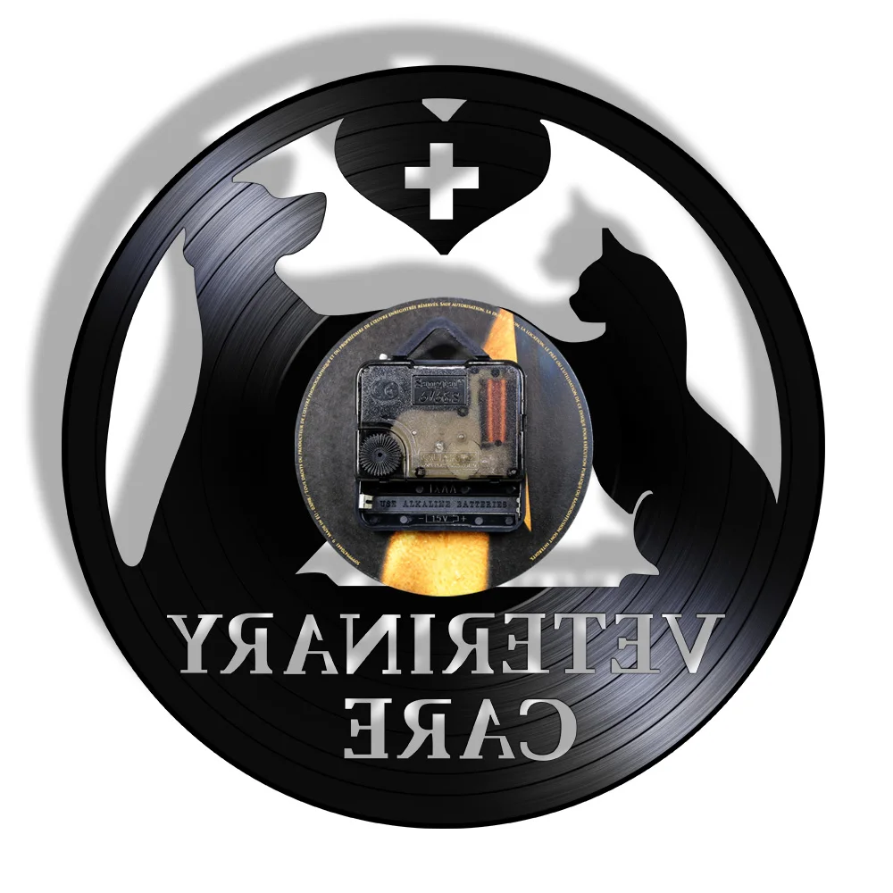 Часы настенные с виниловой пластиной для ветеринарной клиники, современные дизайнерские бесшумные для домашних животных, кошек и собак