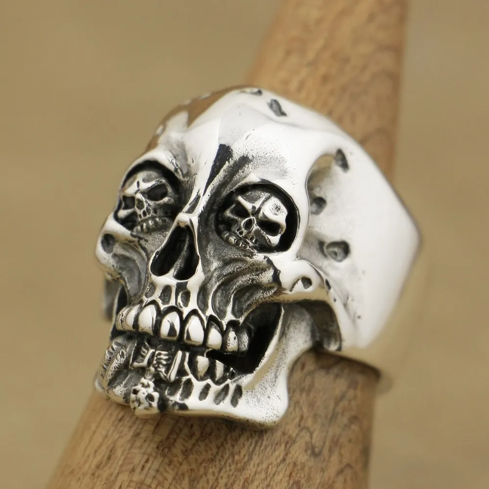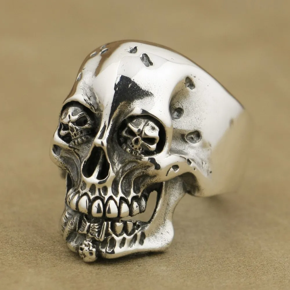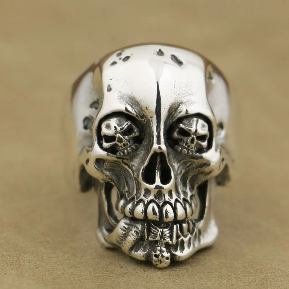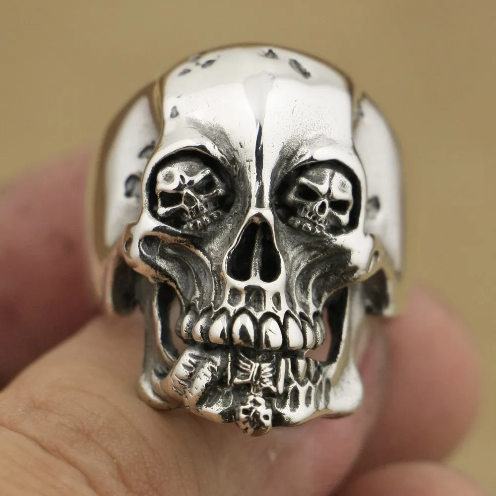 LINSION ручной работы 925 пробы серебряные высокие детали череп мужское байкерское Рок панк кольцо TA76 США Размер 7 15