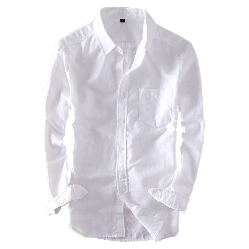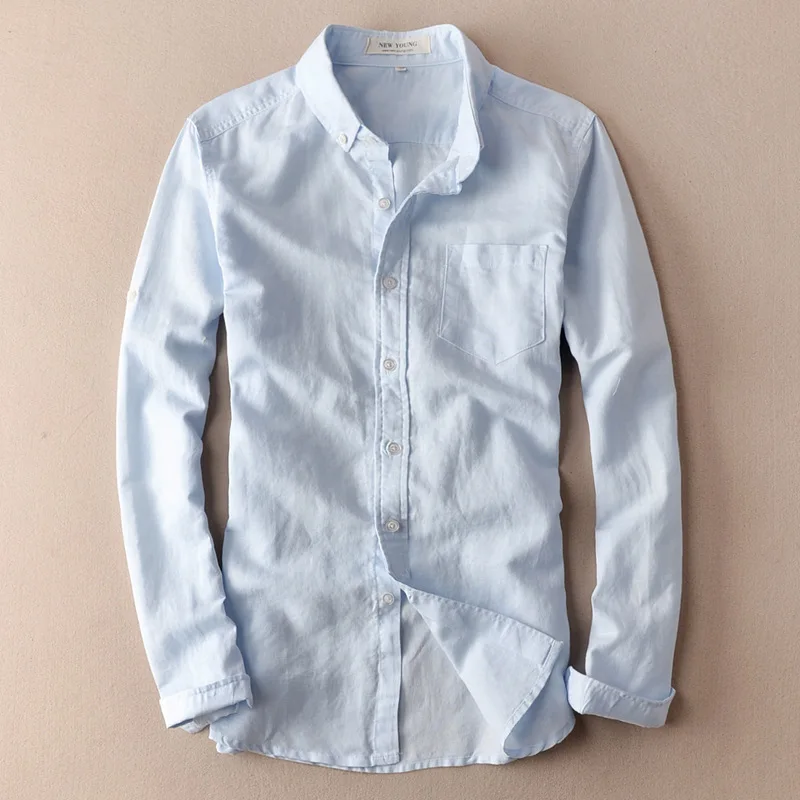 Рубашка мужская с длинным рукавом, элегантная блуза из хлопка и льна, приталенная сорочка с отложным воротником, свободная Мягкая дышащая одежда, S-XXXL