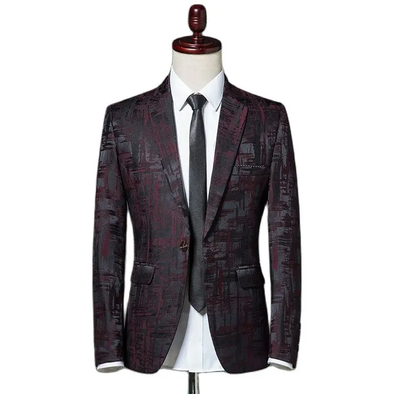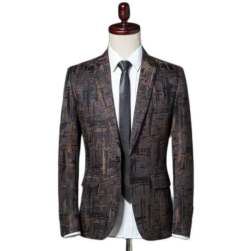 Новинка 2021, Осень-зима, мужские Классические приталенные блейзеры с леопардовым принтом, мужской повседневный деловой костюм на одной пуговице, куртка винного цвета, цвета хаки