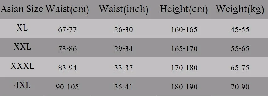 Примечание:Вышеуказанные рекомендации приведены только для справки. Из-за различных методов измерения допускается погрешность в 1-2 см.Вы в соответствии с вашим собственным телом, носите хобби, чтобы выбрать свой собственный подходящий размер. Если у вас есть вопросы, пожалуйста, свяжитесь со службой поддержки клиентов онлайн.