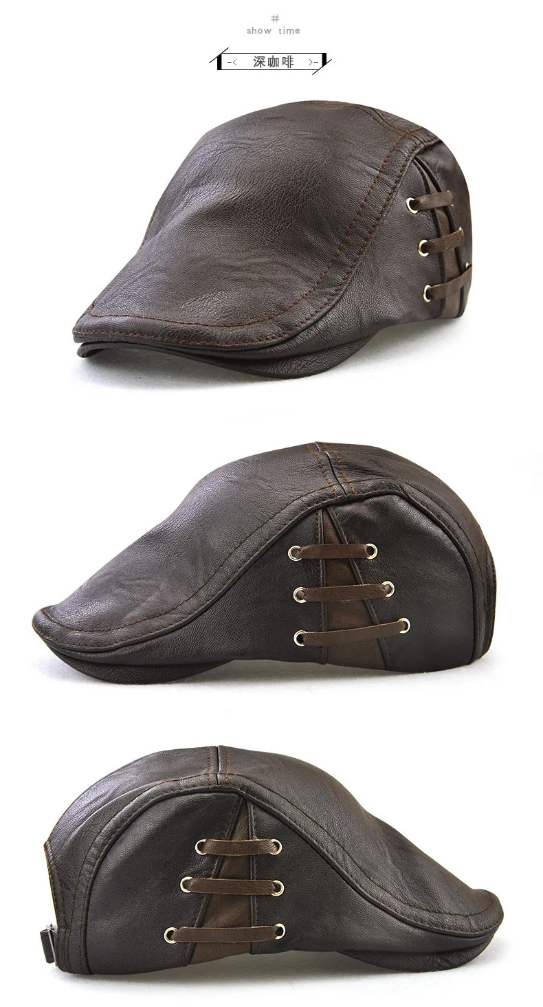 Кепка мужская из искусственной кожи, на шнуровке, в стиле ретро