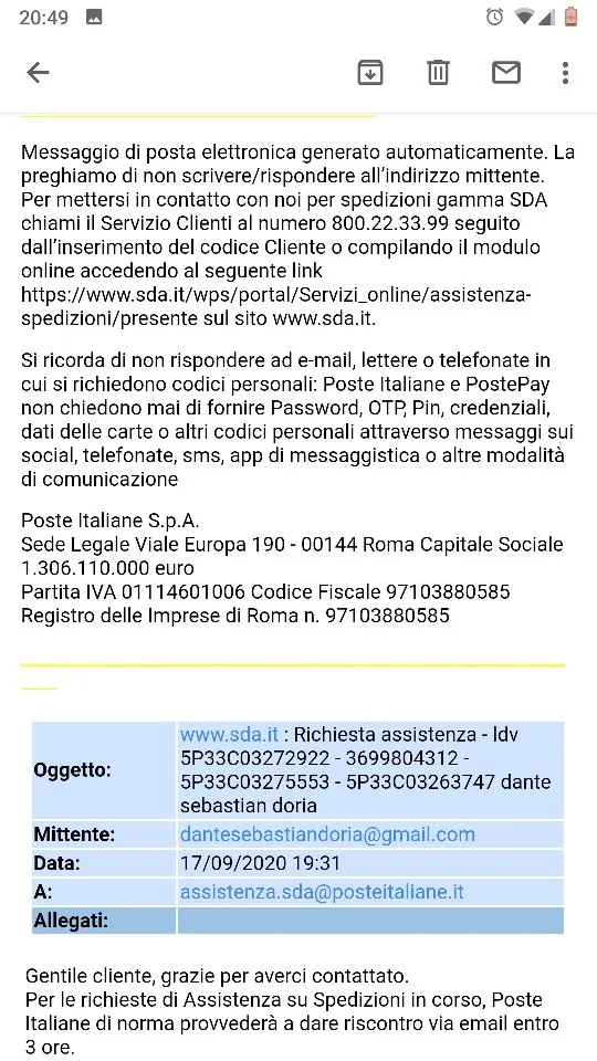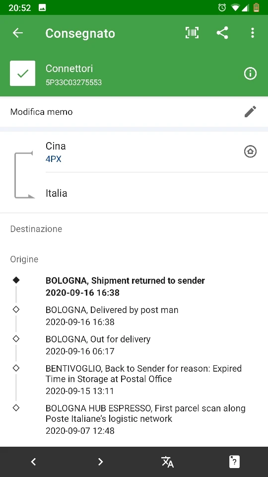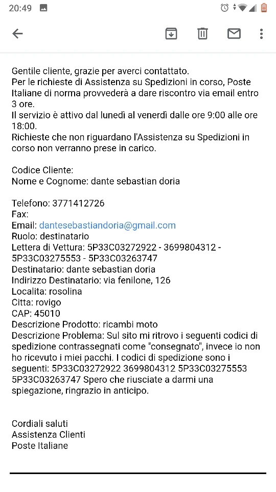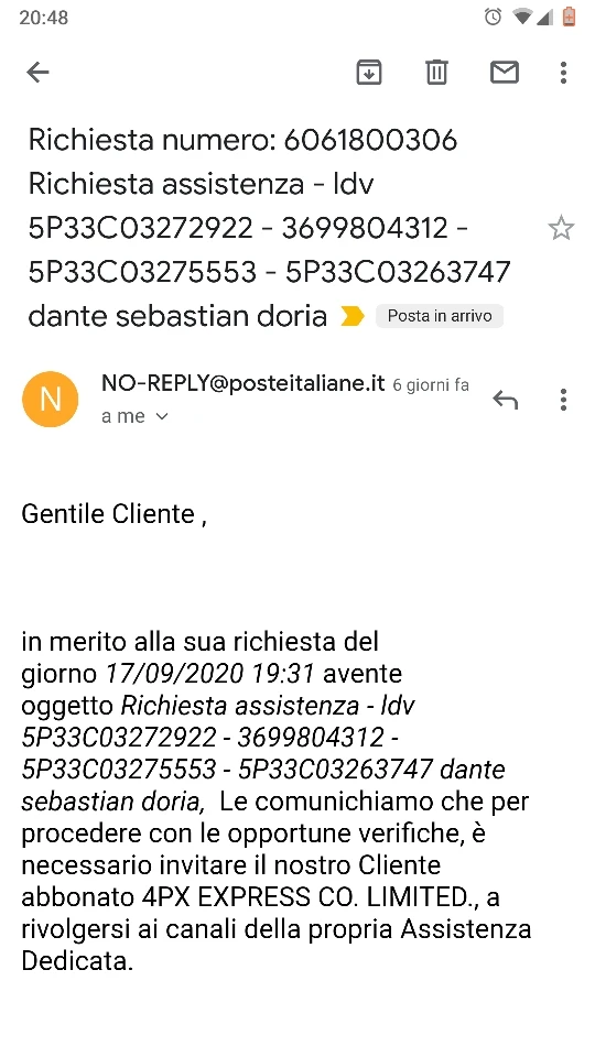 Плохой сервис. Я выбираю «стандартную доставку AliExpress», товары прибывают в Болонью, а затем риторнату отправителю. Я связался с SDA-Poste Italiane, их я отвечаю, что должно быть грузоотправителем, который л 'аббонато (4PX EXPRESS CO. Ограничено) необходимо связаться со службой поддержки клиентов SDA-Poste Italiane. Таким образом, AliExpress решили не возвращать товар, как потрачено, SDA-POSTE Italiane не оставляйте мне отзыв и 4PX EXPRESS CO. Ограниченная серия, не обращайтесь в службу поддержки клиентов SDA-Poste Italiane. Наконец, единственный, который потерялся-это я. Ужасно!