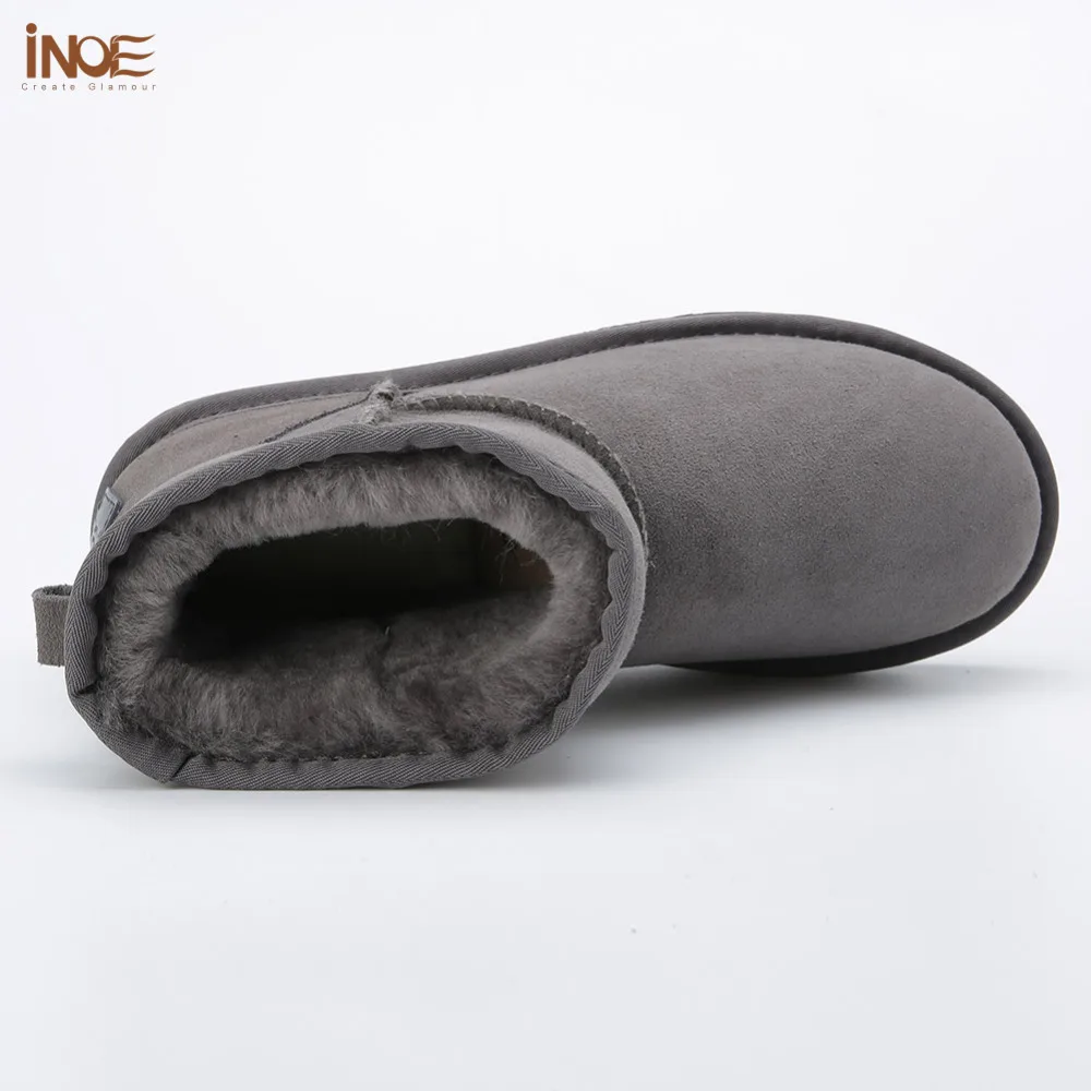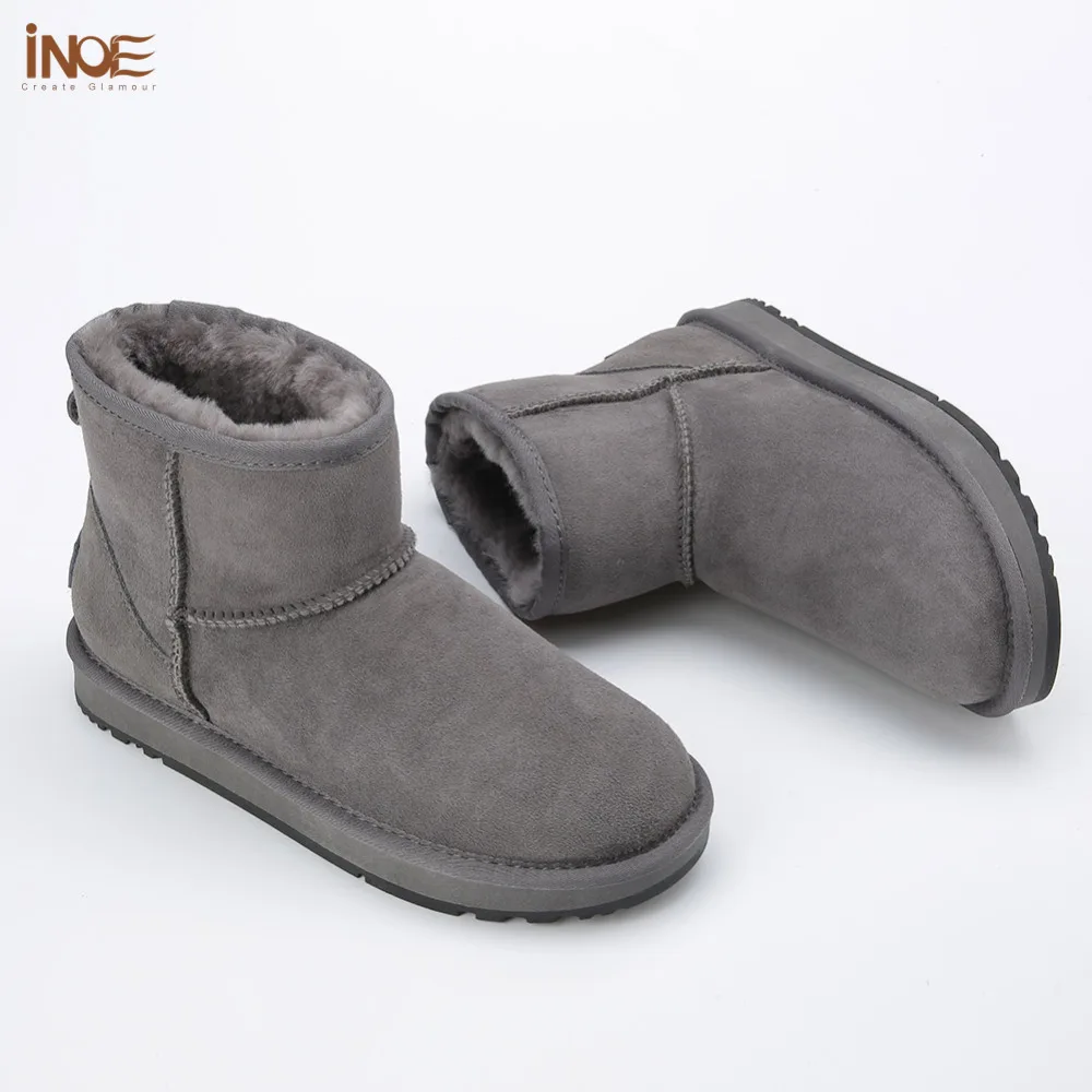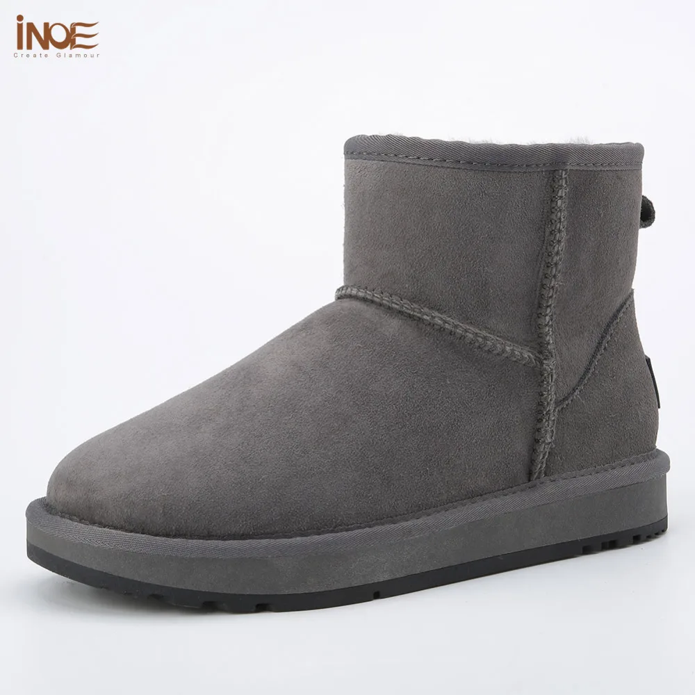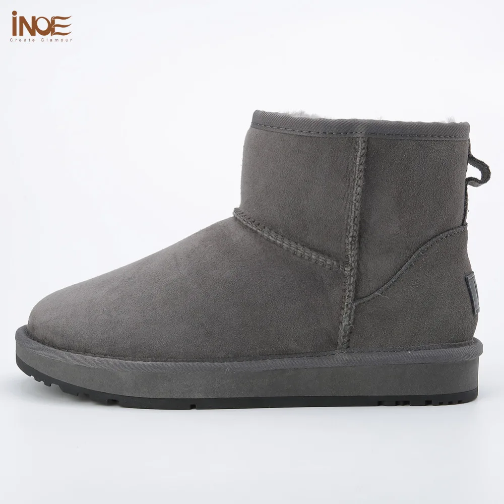 INOEКлассические мужские зимние ботинки из натуральной овечьей кожи с меховой подкладкой; Короткие зимние ботинки на плоской подошве; Цвет черный, серый; Размеры 35-44