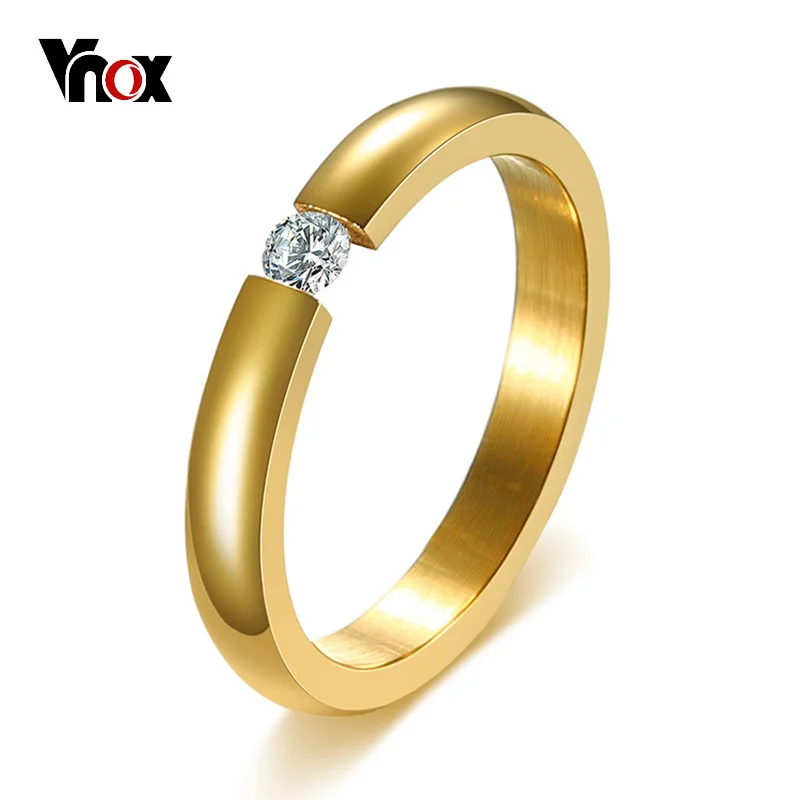 Vnox 3 мм бриллиантовые CZ камень кольцо для женщин обручальные кольца обручальное кольцо из нержавеющей стали Элегантные темпераментные плиссированные закрытые женские ювелирные изделия